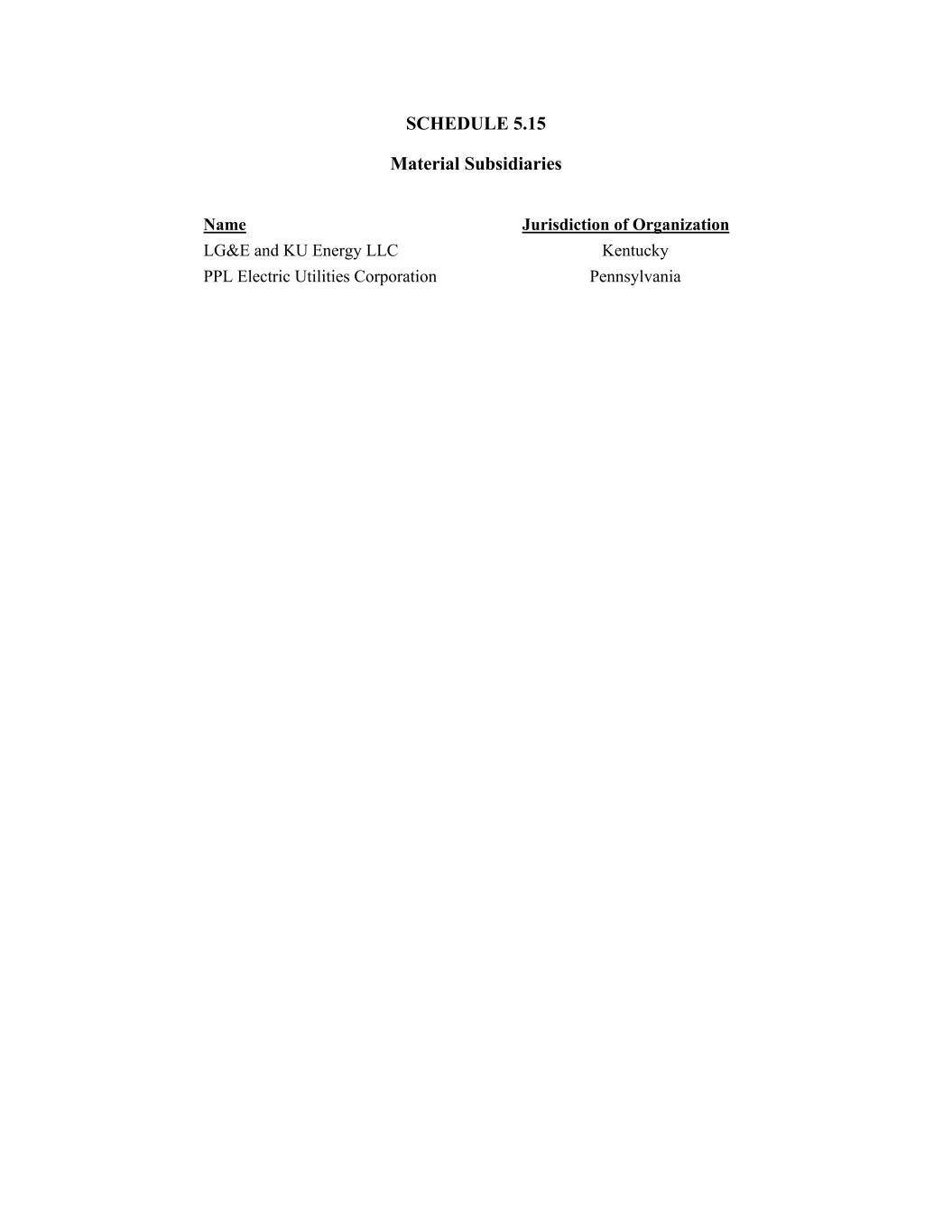SCHEDULE 5.15 Material Subsidiaries Name Jurisdiction of Organization LG&E and KU Energy LLC Kentucky PPL Electric Utilities Corporation Pennsylvania