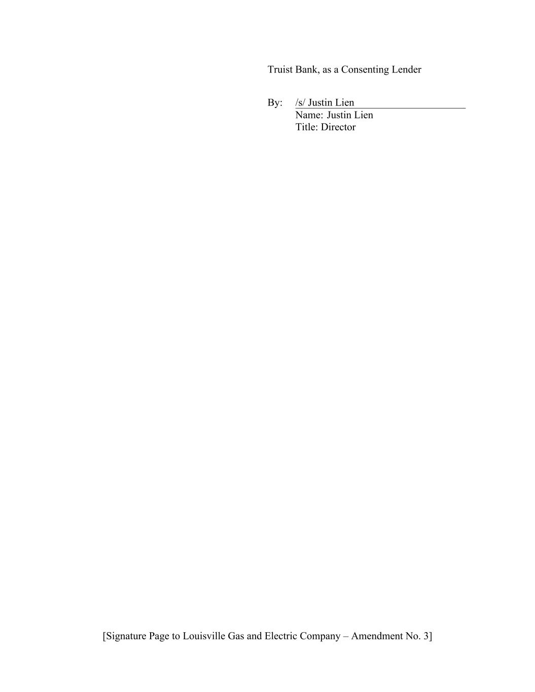 [Signature Page to Louisville Gas and Electric Company – Amendment No. 3] Truist Bank, as a Consenting Lender By: /s/ Justin Lien Name: Justin Lien Title: Director