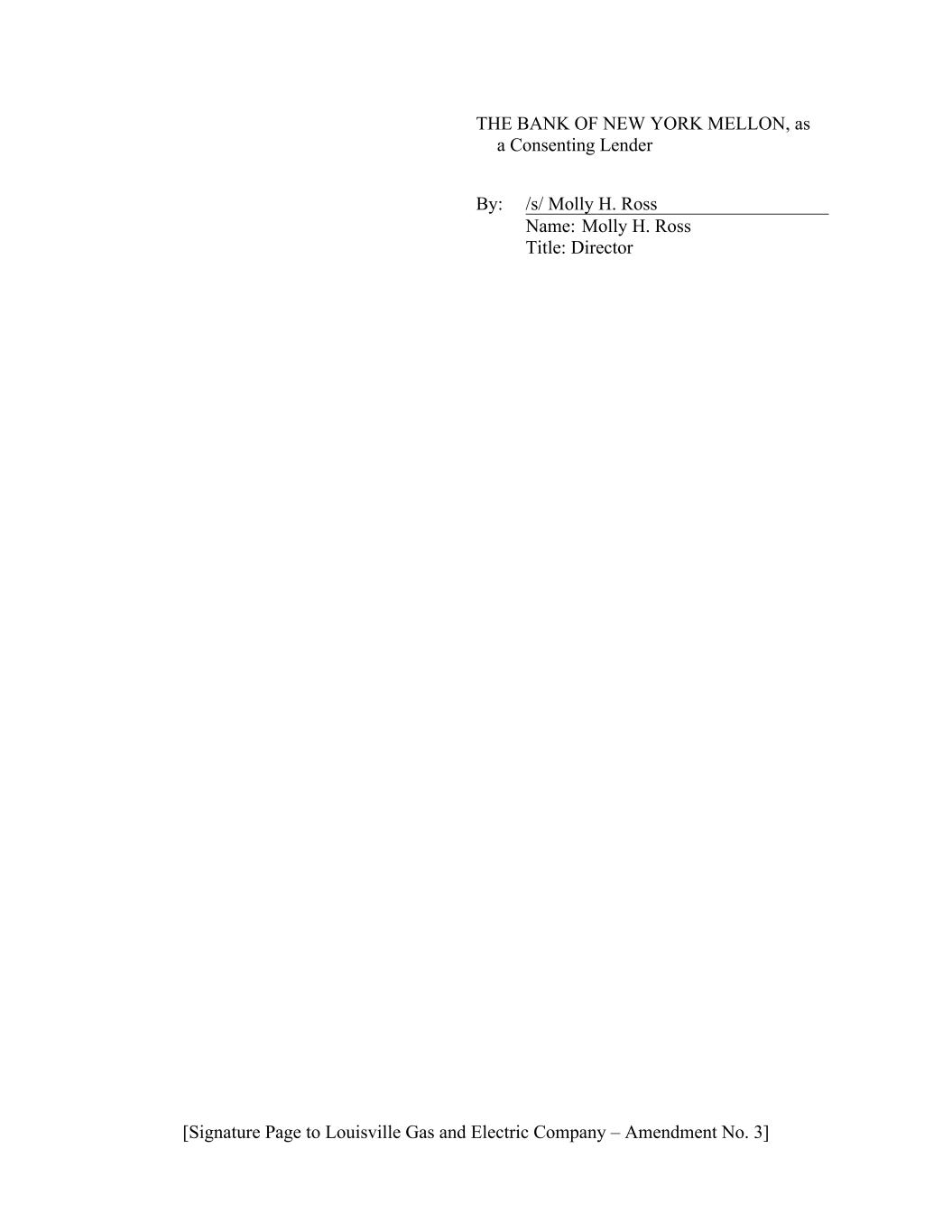[Signature Page to Louisville Gas and Electric Company – Amendment No. 3] THE BANK OF NEW YORK MELLON, as a Consenting Lender By: /s/ Molly H. Ross Name: Molly H. Ross Title: Director
