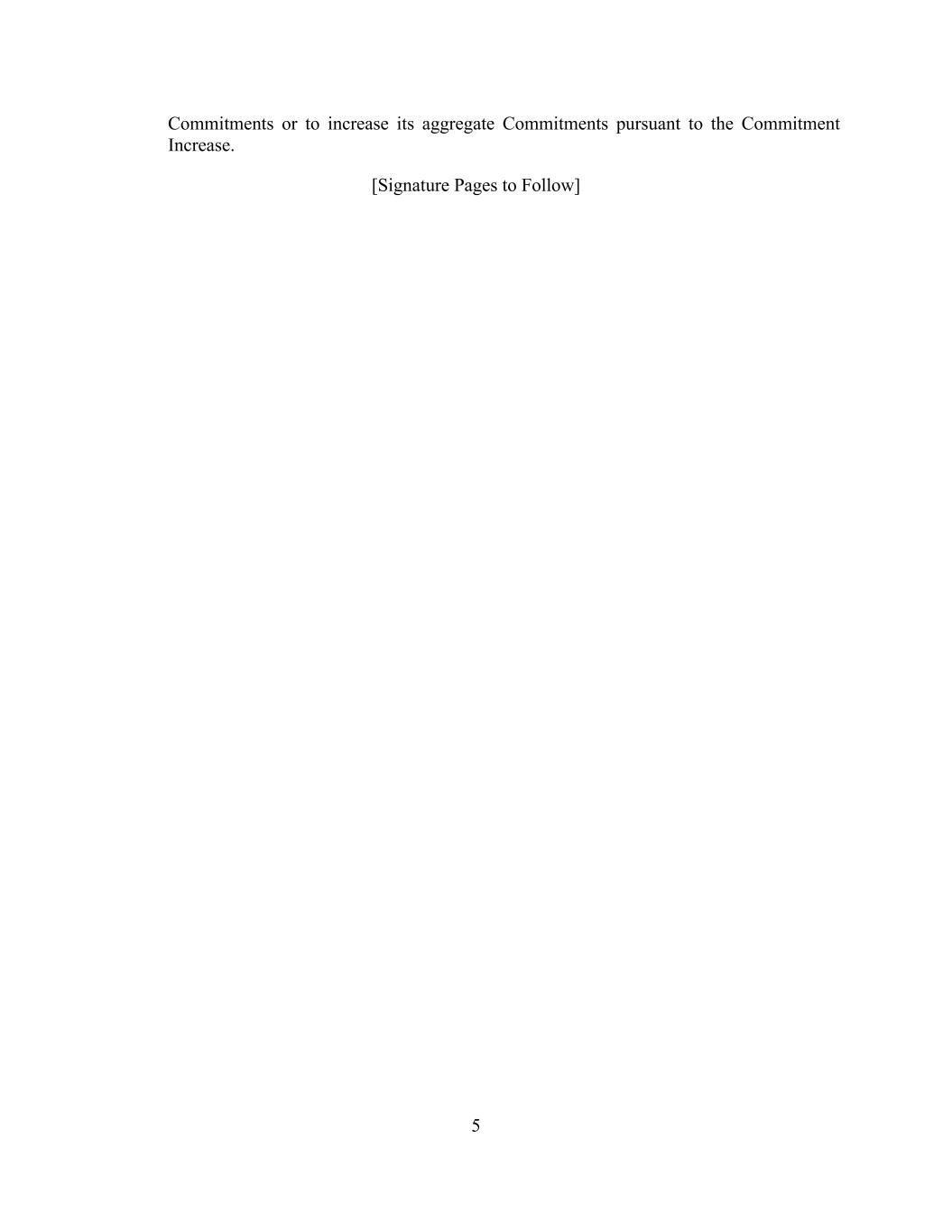 5 Commitments or to increase its aggregate Commitments pursuant to the Commitment Increase. [Signature Pages to Follow]