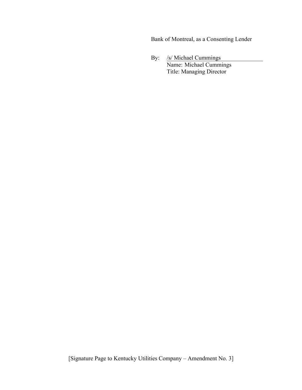 [Signature Page to Kentucky Utilities Company – Amendment No. 3] Bank of Montreal, as a Consenting Lender By: /s/ Michael Cummings Name: Michael Cummings Title: Managing Director