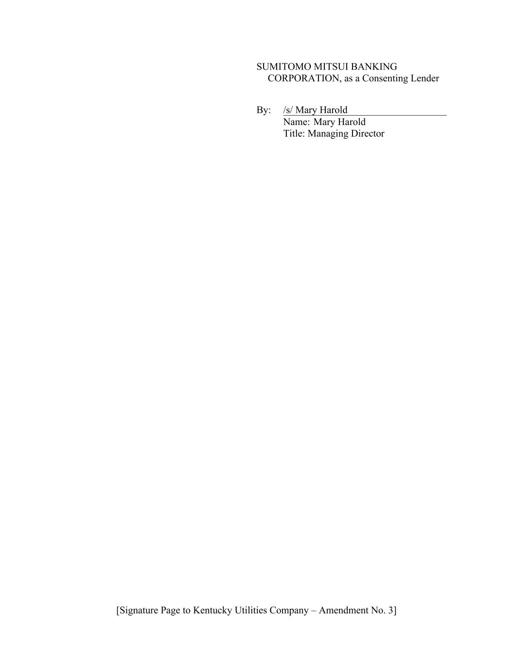 [Signature Page to Kentucky Utilities Company – Amendment No. 3] SUMITOMO MITSUI BANKING CORPORATION, as a Consenting Lender By: /s/ Mary Harold Name: Mary Harold Title: Managing Director