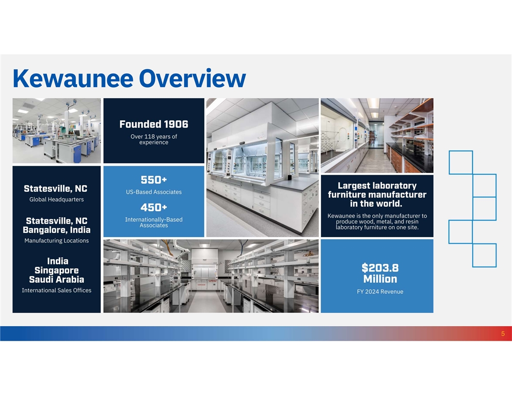 Introduction Agenda Annual Shareholder Meeting • Kewaunee Scientific Overview • Fiscal Year 2024 Review • Strategic Direction and Outlook • Q&A 4