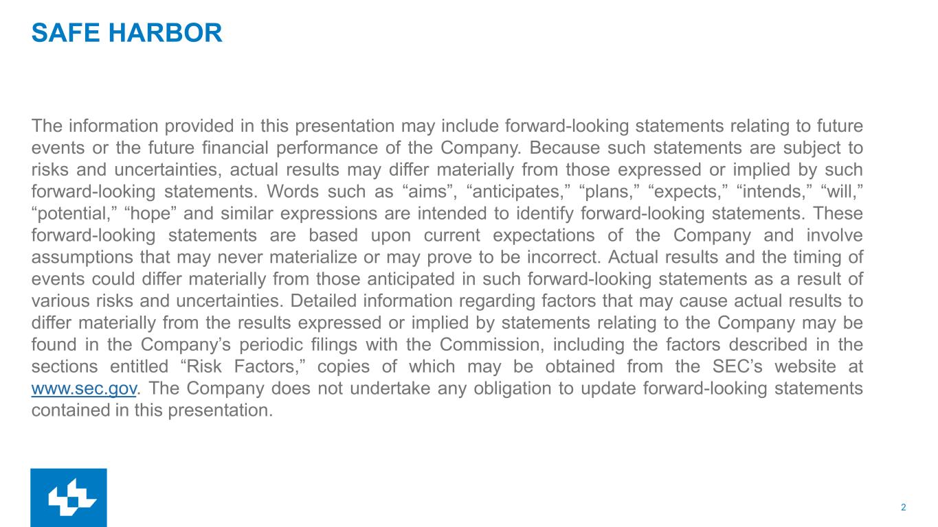 2 SAFE HARBOR The information provided in this presentation may include forward-looking statements relating to future events or the future financial performance of the Company. Because such statements are subject to risks and uncertainties, actual results may differ materially from those expressed or implied by such forward-looking statements. Words such as “aims”, “anticipates,” “plans,” “expects,” “intends,” “will,” “potential,” “hope” and similar expressions are intended to identify forward-looking statements. These forward-looking statements are based upon current expectations of the Company and involve assumptions that may never materialize or may prove to be incorrect. Actual results and the timing of events could differ materially from those anticipated in such forward-looking statements as a result of various risks and uncertainties. Detailed information regarding factors that may cause actual results to differ materially from the results expressed or implied by statements relating to the Company may be found in the Company’s periodic filings with the Commission, including the factors described in the sections entitled “Risk Factors,” copies of which may be obtained from the SEC’s website at www.sec.gov. The Company does not undertake any obligation to update forward-looking statements contained in this presentation.