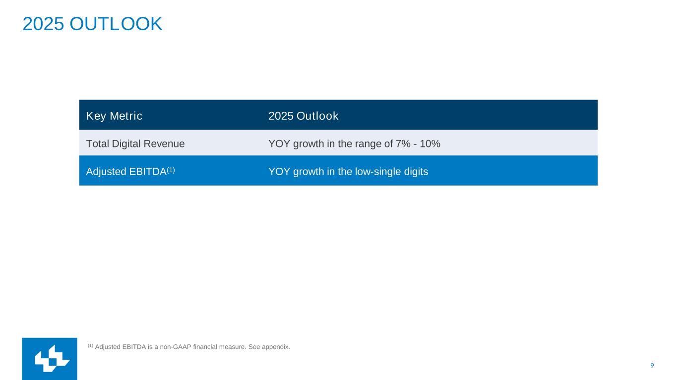 9 2025 OUTLOOK (1) Adjusted EBITDA is a non-GAAP financial measure. See appendix. Key Metric 2025 Outlook Total Digital Revenue YOY growth in the range of 7% - 10% Adjusted EBITDA(1) YOY growth in the low-single digits