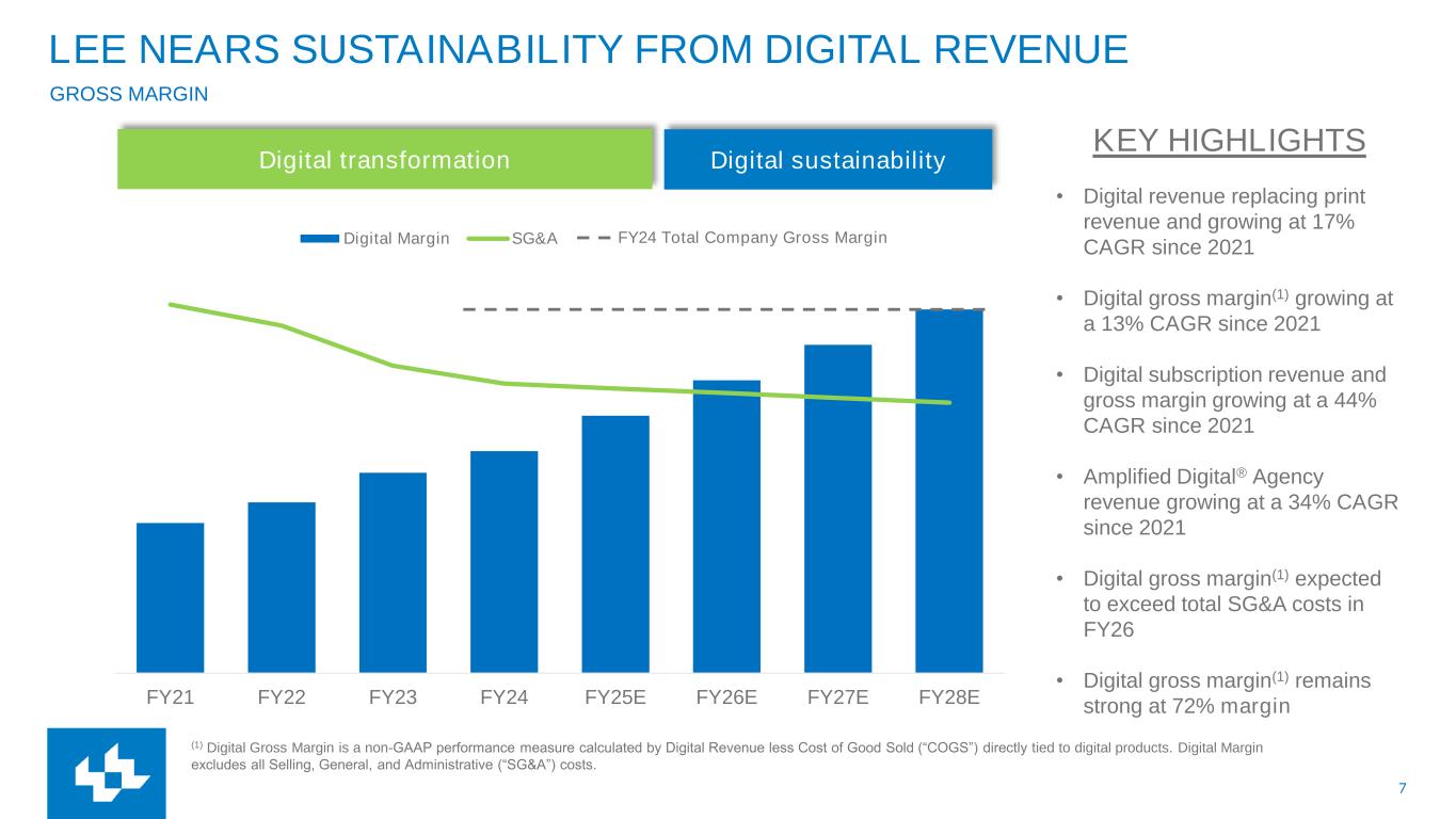 7 FY21 FY22 FY23 FY24 FY25E FY26E FY27E FY28E Digital Margin SG&A Digital transformation Digital sustainability LEE NEARS SUSTAINABILITY FROM DIGITAL REVENUE KEY HIGHLIGHTS • Digital revenue replacing print revenue and growing at 17% CAGR since 2021 • Digital gross margin(1) growing at a 13% CAGR since 2021 • Digital subscription revenue and gross margin growing at a 44% CAGR since 2021 • Amplified Digital® Agency revenue growing at a 34% CAGR since 2021 • Digital gross margin(1) expected to exceed total SG&A costs in FY26 • Digital gross margin(1) remains strong at 72% margin GROSS MARGIN FY24 Total Company Gross Margin (1) Digital Gross Margin is a non-GAAP performance measure calculated by Digital Revenue less Cost of Good Sold (“COGS”) directly tied to digital products. Digital Margin excludes all Selling, General, and Administrative (“SG&A”) costs.