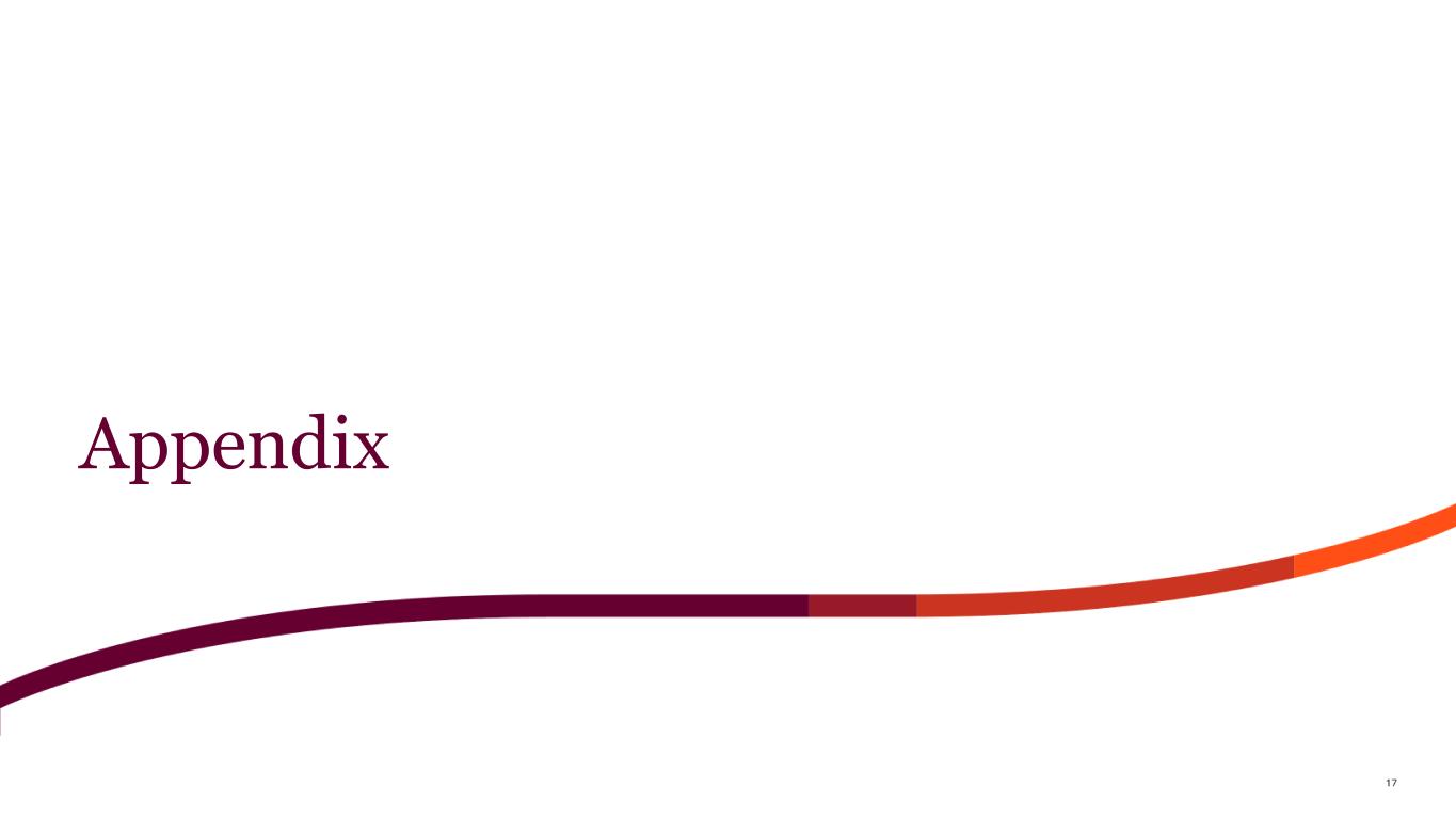 16 Key Highlights Investment Portfolio ($B) Portfolio Quality • Portfolio1 remained well-diversified with 97% investment grade​ securities. • Achieved an average +1.4% new money yield pick- up in 2024; +50 bps YOY driven by our investment strategy optimization. • Alternatives portfolio delivered a 2.8% quarterly return, or 11.2% annualized return, above our long-term expectation. Key Priorities New Money Alternative Investment Income ($M), Pre-Tax • Optimize new money strategies by leveraging the sourcing capabilities of our multi-manager platform. • New money strategy focused on maintaining diversification and high quality while capitalizing on less liquid assets and structured asset class premiums. • Achieve attractive risk-adjusted alternative returns. Investment Portfolio $113 $115 $119 $118 1 See Note on slide 19. 2 Mortgage Loans include CMLs and RMLs. 3 Other includes cash, COLI, common and preferred stock, municipals, sovereign government and UST/agency. 4 Defined as the yield on the 7-year US Treasury note plus the Barclay’s Public Corp Industrial Spreads Weighted 50% A and 50% BBB. $119 2 3 41% 40% 38% 38% 38% 17%18%18%18%18% 14% 14% 14% 14% 15% 18%18%17%17%17% 3% 3% 3% 3% 3% 9%9%10%8%7% 6.4% 6.1% 6.9% 6.4% 6.2% 4 New money yield