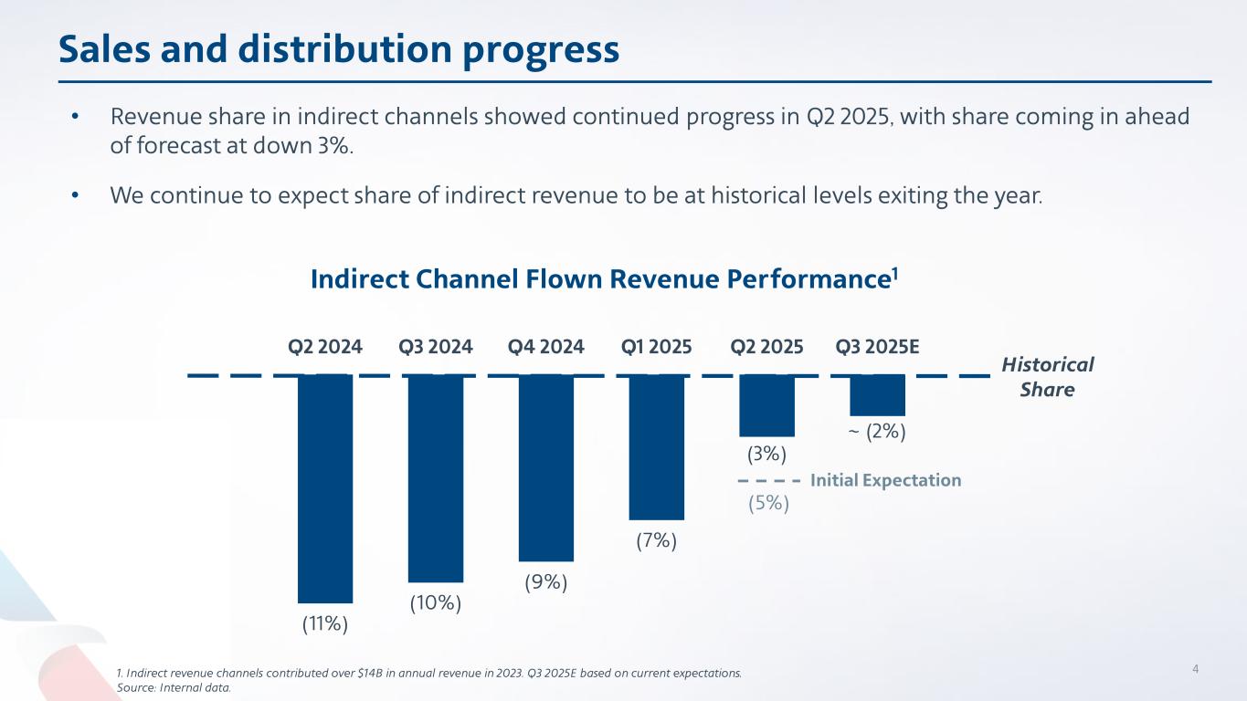 (11%) (10%) (9%) (7%) (3%) ~ (2%) Q2 2024 Q3 2024 Q4 2024 Q1 2025 Q2 2025 Q3 2025E Sales and distribution progress Indirect Channel Flown Revenue Performance1 4 • Revenue share in indirect channels showed continued progress in Q2 2025, with share coming in ahead of forecast at down 3%. • We continue to expect share of indirect revenue to be at historical levels exiting the year. Historical Share 1. Indirect revenue channels contributed over $14B in annual revenue in 2023. Q3 2025E based on current expectations. Source: Internal data. Initial Expectation (5%)