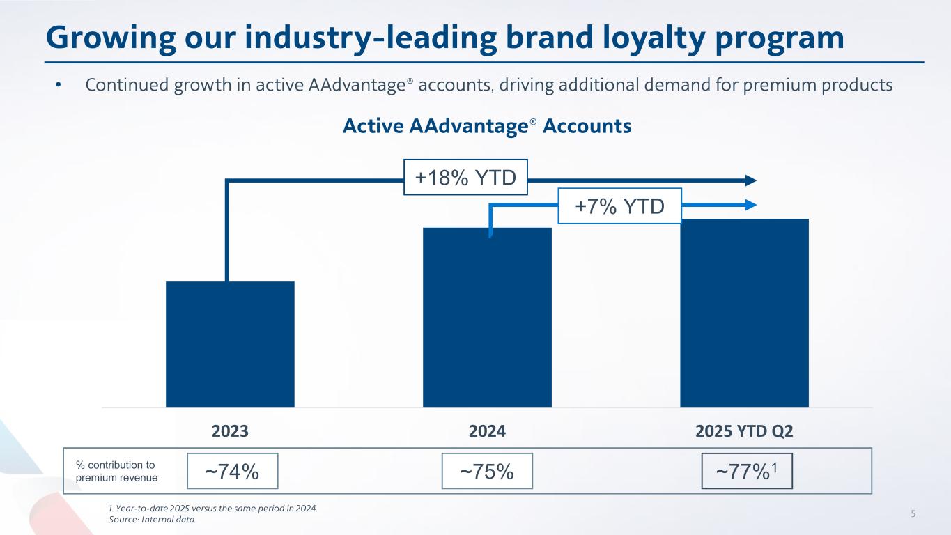 2023 2024 2025 YTD Q2 Growing our industry-leading brand loyalty program 51. Year-to-date 2025 versus the same period in 2024. Source: Internal data. • Continued growth in active AAdvantage® accounts, driving additional demand for premium products +7% YTD % contribution to premium revenue ~77%1~74% Active AAdvantage® Accounts ~75% +18% YTD