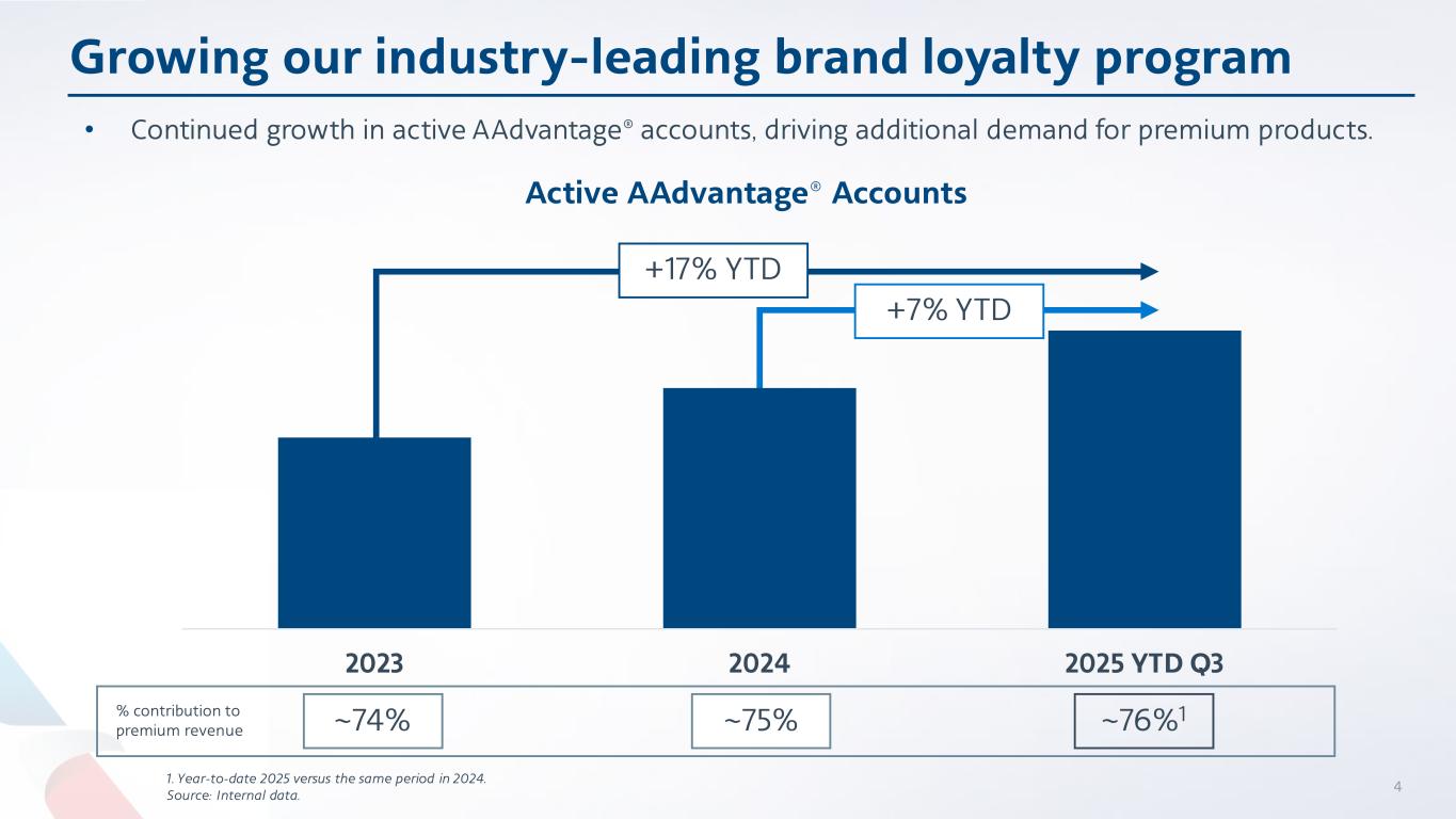 Growing our industry-leading brand loyalty program 41. Year-to-date 2025 versus the same period in 2024. Source: Internal data. • Continued growth in active AAdvantage® accounts, driving additional demand for premium products. +7% YTD % contribution to premium revenue ~76%1~74% Active AAdvantage® Accounts ~75% +17% YTD 2023 2024 2025 YTD Q3