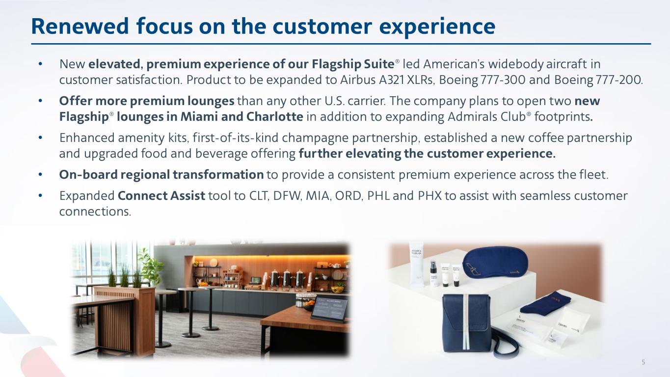 Renewed focus on the customer experience 5 • New elevated, premium experience of our Flagship Suite® led American’s widebody aircraft in customer satisfaction. Product to be expanded to Airbus A321 XLRs, Boeing 777-300 and Boeing 777-200. • Offer more premium lounges than any other U.S. carrier. The company plans to open two new Flagship® lounges in Miami and Charlotte in addition to expanding Admirals Club® footprints. • Enhanced amenity kits, first-of-its-kind champagne partnership, established a new coffee partnership and upgraded food and beverage offering further elevating the customer experience. • On-board regional transformation to provide a consistent premium experience across the fleet. • Expanded Connect Assist tool to CLT, DFW, MIA, ORD, PHL and PHX to assist with seamless customer connections.