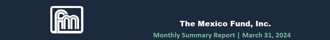 Global equity markets registered positive returns during March 2024. The MSCI World Index and the MSCI Emerging Markets Index increased 3.0% and 2.2%, respectively, during the month. Major central banks maintained unchanged their reference interest rates; the Federal Reserve at a range of 5.25% - 5.50%, the Bank of England at 5.25% and the European Central Bank maintained its main refinancing rate at 4.50%. The DJIA and the S&P 500 increased 2.1% and 3.1%, respectively, while the yield on the 10-year Treasury note decreased 5 basis points to 4.20% and the U.S. dollar appreciated 0.3% (measured by the DXY Index4) during March 2024. In Mexico, the MSCI Mexico Index increased 5.3% and the Mexican peso appreciated 3.0% during the month, to Ps. $16.56, whereas the Fund’s NAV increased 6.8%, outperforming its benchmark.