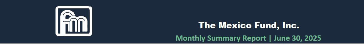 Global equity markets registered positive returns during June 2025. The MSCI World Index and the MSCI Emerging Markets Index increased by 4.2% and 5.7%, respectively, during the month. On global monetary policy, both the Federal Reserve and the Bank of England maintained their overnight interest rates at a range of 4.25% and 4.50% and at 4.25%, respectively, while the European Central Bank decreased its main refinancing rate by 25 basis points to 2.15%. The DJIA and the S&P 500 increased 4.3% and 5.0%, respectively, while the yield on the 10-year Treasury note decreased 17 basis points to 4.23% and the U.S. dollar depreciated 2.5% (measured by the DXY Index5) during June 2025. In Mexico, the MSCI Mexico Index increased 3.2% and the Mexican peso appreciated 3.7% during the month, to Ps. $18.75, whereas the Fund’s NAV increased 2.2%, underperforming its benchmark.