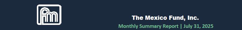 Global equity markets registered mostly positive returns during July 2025. The MSCI World Index and the MSCI Emerging Markets Index increased by 1.2% and 1.7%, respectively, during the month. On global monetary policy, the Federal Reserve maintained its overnight interest rate unchanged at a range between 4.25% and 4.50%, and the European Central Bank left its main refinancing rate at 2.15%. The DJIA and the S&P 500 increased 0.1% and 2.2%, respectively, while the yield on the 10-year Treasury note increased 15 basis points to 4.37% and the U.S. dollar appreciated 3.2% (measured by the DXY Index5) during July 2025. In Mexico, the MSCI Mexico Index decreased 1.1% and the Mexican peso depreciated 0.7% during the month, to Ps. $18.88, whereas the Fund’s NAV decreased 1.5%, underperforming its benchmark.