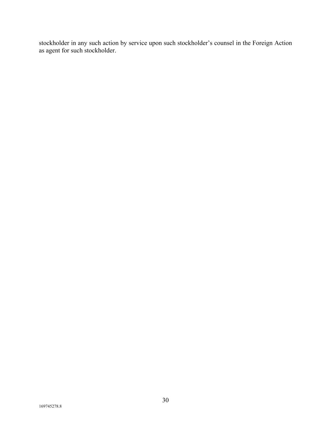 30 169745278.8 stockholder in any such action by service upon such stockholder’s counsel in the Foreign Action as agent for such stockholder.