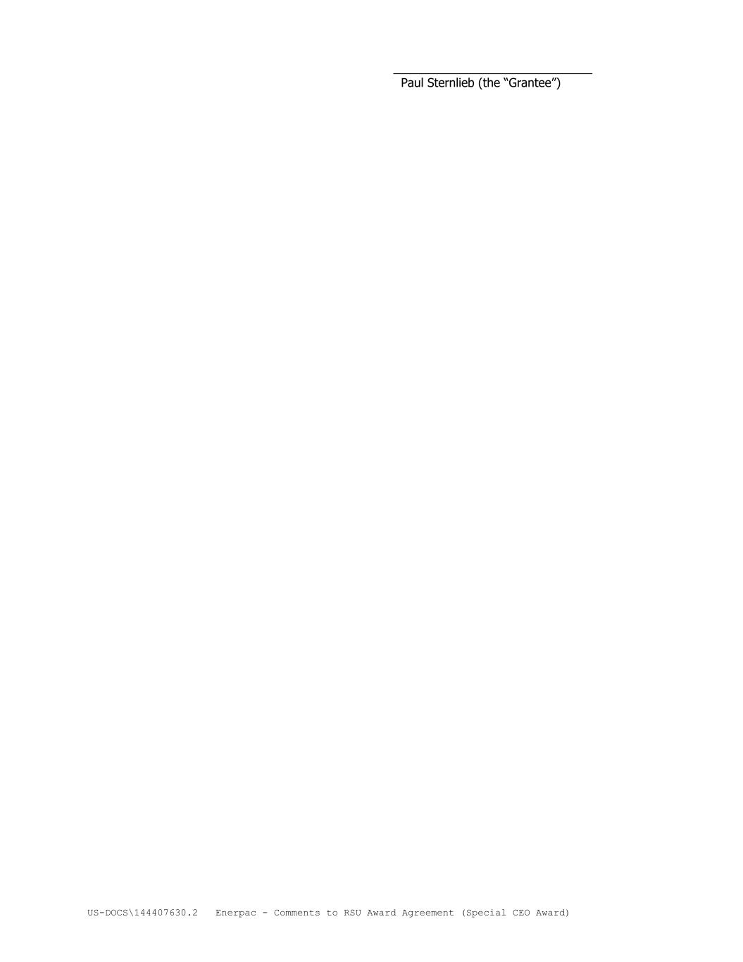 US-DOCS\144407630.2 Enerpac - Comments to RSU Award Agreement (Special CEO Award) ______________________________ Paul Sternlieb (the “Grantee”)