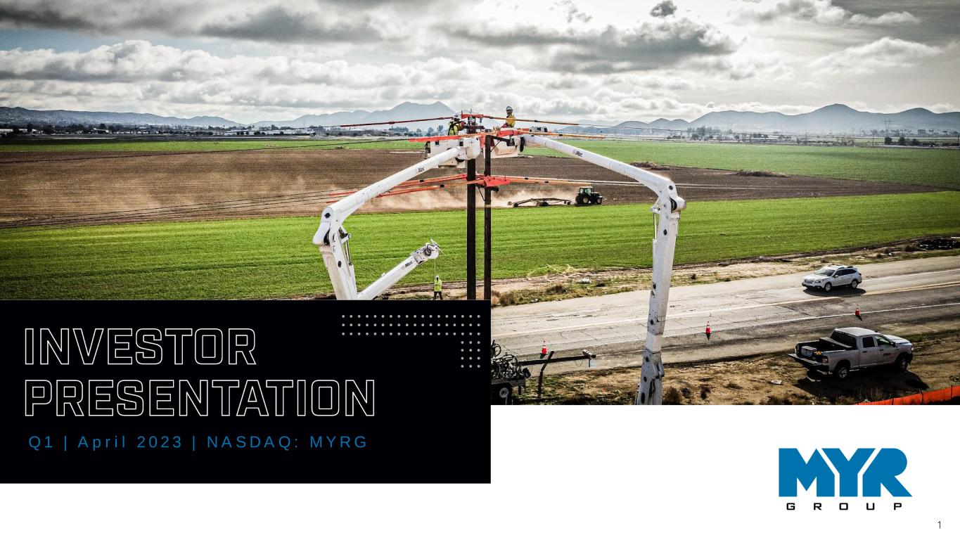 1 INVESTOR PRESENTATION Q 1 | A p r i l 2 0 2 3 | N A S D A Q : M Y R G