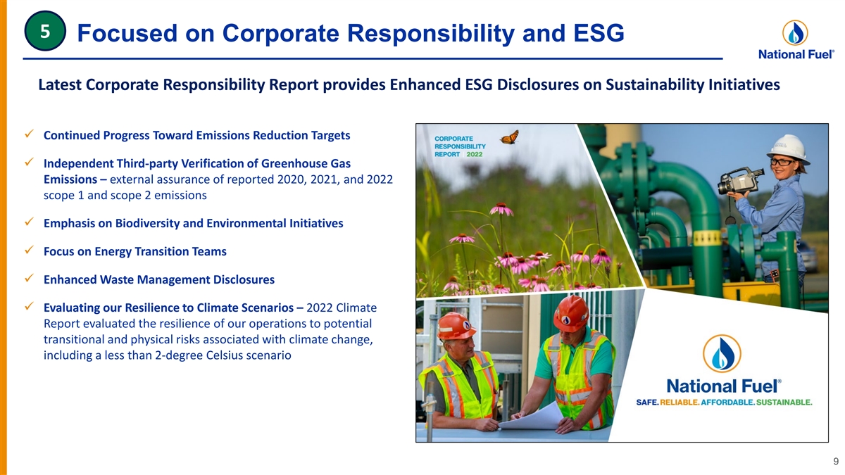 National Fuel is committed to the safe and environmentally conscious development, transportation, storage, and distribution of natural gas resources. For additional information, please review our Corporate Responsibility Report. 2