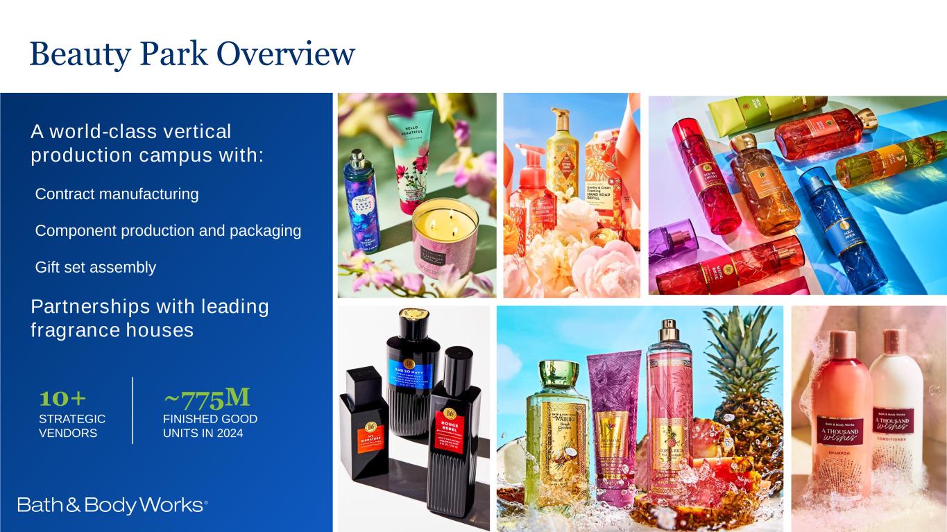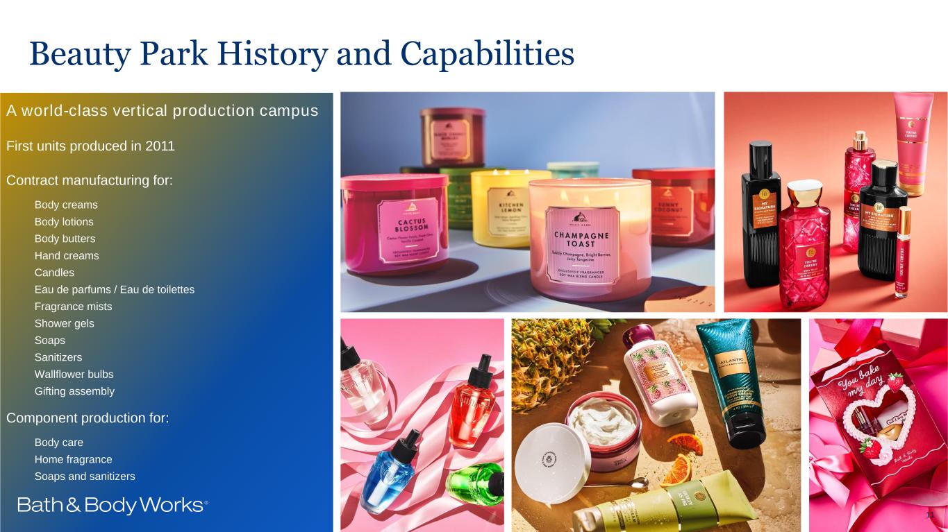 Beauty Park Overview A world-class vertical production campus with: Contract manufacturing Component production and packaging Gift set assembly Partnerships with leading fragrance houses 10+ STRATEGIC VENDORS ~775M FINISHED GOOD UNITS IN 2024 9