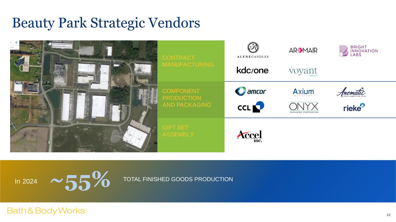 CONTRACT MANUFACTURING COMPONENT PRODUCTION AND PACKAGING GIFT SET ASSEMBLY Beauty Park Strategic Vendors 12 TOTAL FINISHED GOODS PRODUCTION~55%In 2024