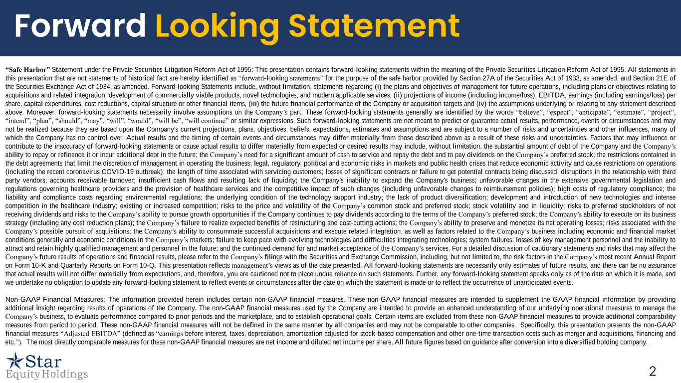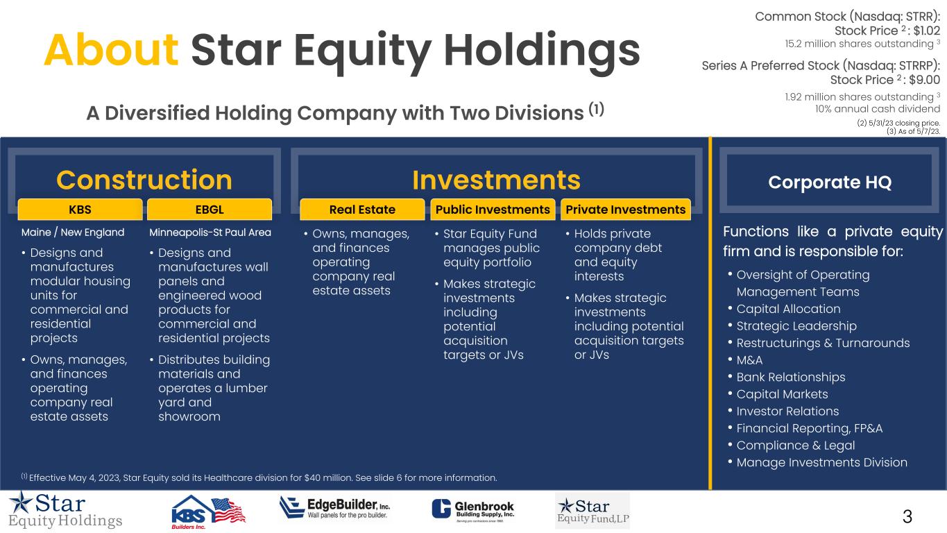 1 A Diversified Holding Company www.starequity.com Creating shareholder value through operational excellence and disciplined capital allocation Common Stock: Nasdaq: STRR Series A 10% Preferred Stock: Nasdaq: STRRP Investor Presentation June 2023