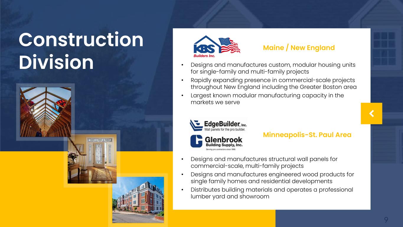 8 Construction Division Two Business Units KBS Builders (“KBS”) EdgeBuilder-Glenbrook (“EBGL”)