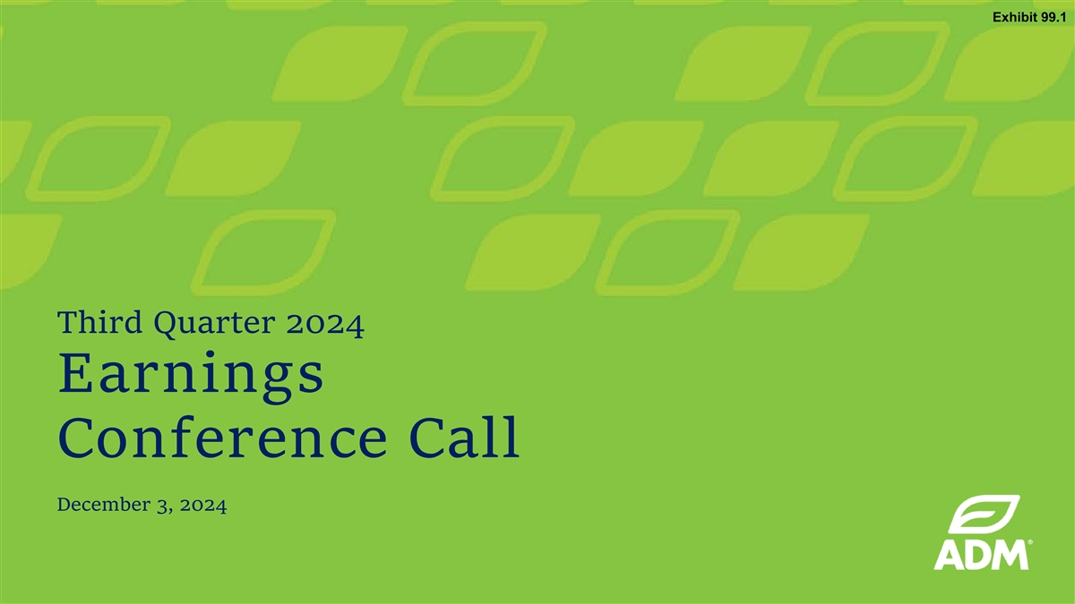 Proprietary business information of ADM. Exhibit 99.1 Third Quarter 2024 Earnings Conference Call December 3, 2024 Proprietary business information of ADM.