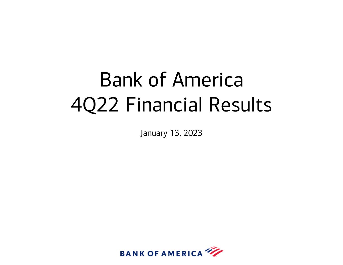 Bank of America 4Q22 Financial Results January 13, 2023