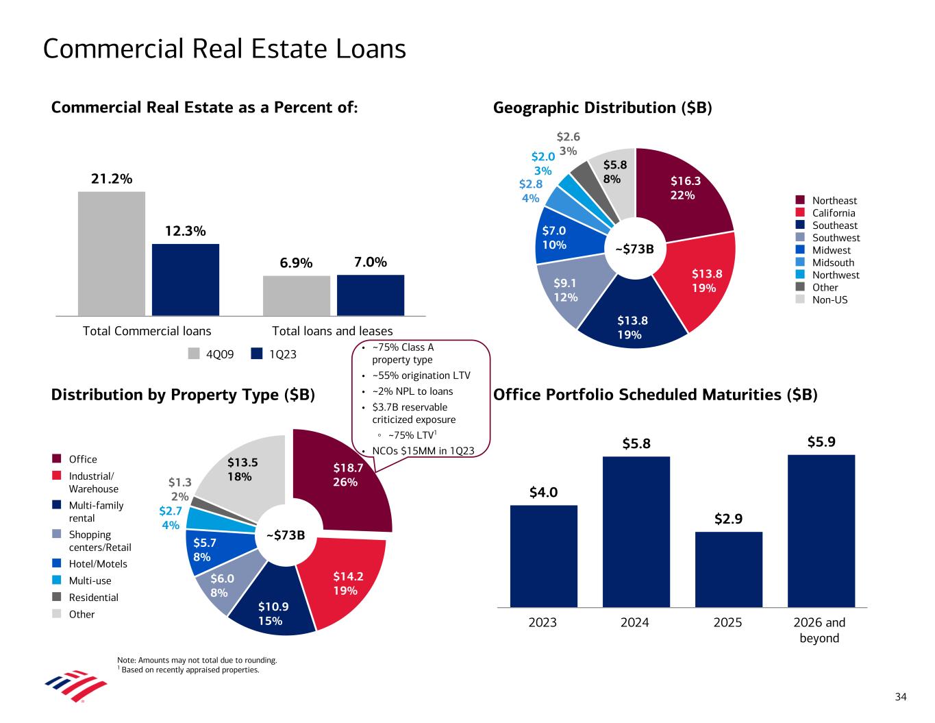 Commercial Real Estate Loans 34 21.2% 6.9% 12.3% 7.0% 4Q09 1Q23 Total Commercial loans Total loans and leases Commercial Real Estate as a Percent of: Geographic Distribution ($B) $16.3 22% $13.8 19% $13.8 19% $9.1 12% $7.0 10% $5.8 8% Northeast California Southeast Southwest Midwest Midsouth Northwest Other Non-US Office Portfolio Scheduled Maturities ($B) $18.7 26% $14.2 19% $10.9 15% $6.0 8% $5.7 8% $13.5 18% Office Industrial/ Warehouse Multi-family rental Shopping centers/Retail Hotel/Motels Multi-use Residential Other ~$73B Distribution by Property Type ($B) $2.6 3%$2.0 3% $2.8 4% $1.3 2% $2.7 4% $4.0 $5.8 $2.9 $5.9 2023 2024 2025 2026 and beyond • ~75% Class A property type • ~55% origination LTV • ~2% NPL to loans • $3.7B reservable criticized exposure ◦ ~75% LTV1 • NCOs $15MM in 1Q23 ~$73B Note: Amounts may not total due to rounding. 1 Based on recently appraised properties.