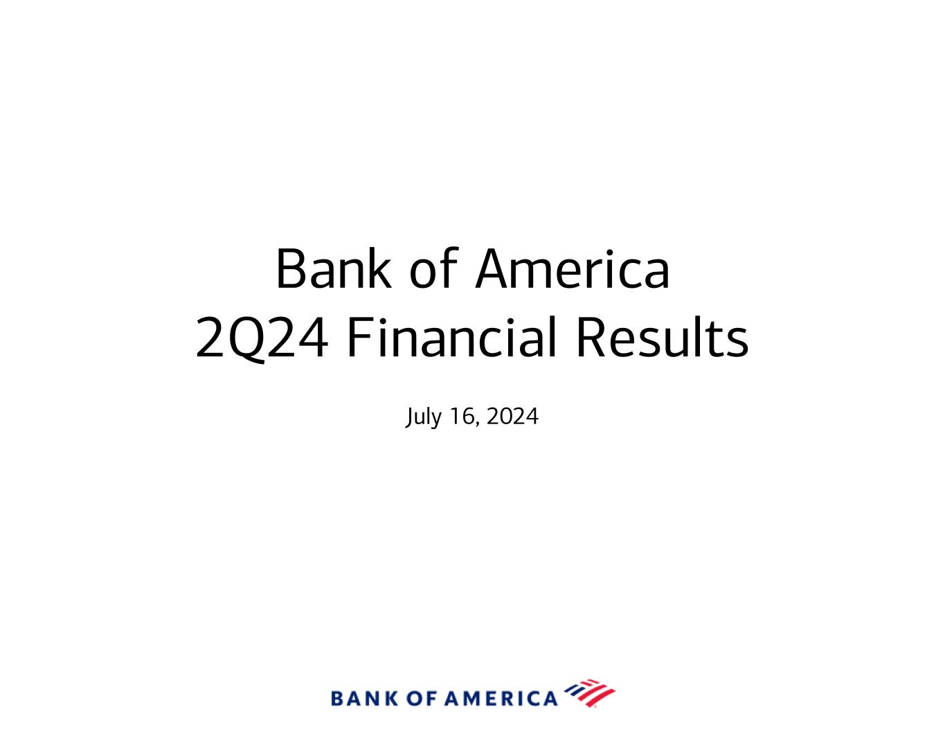 Bank of America 2Q24 Financial Results July 16, 2024