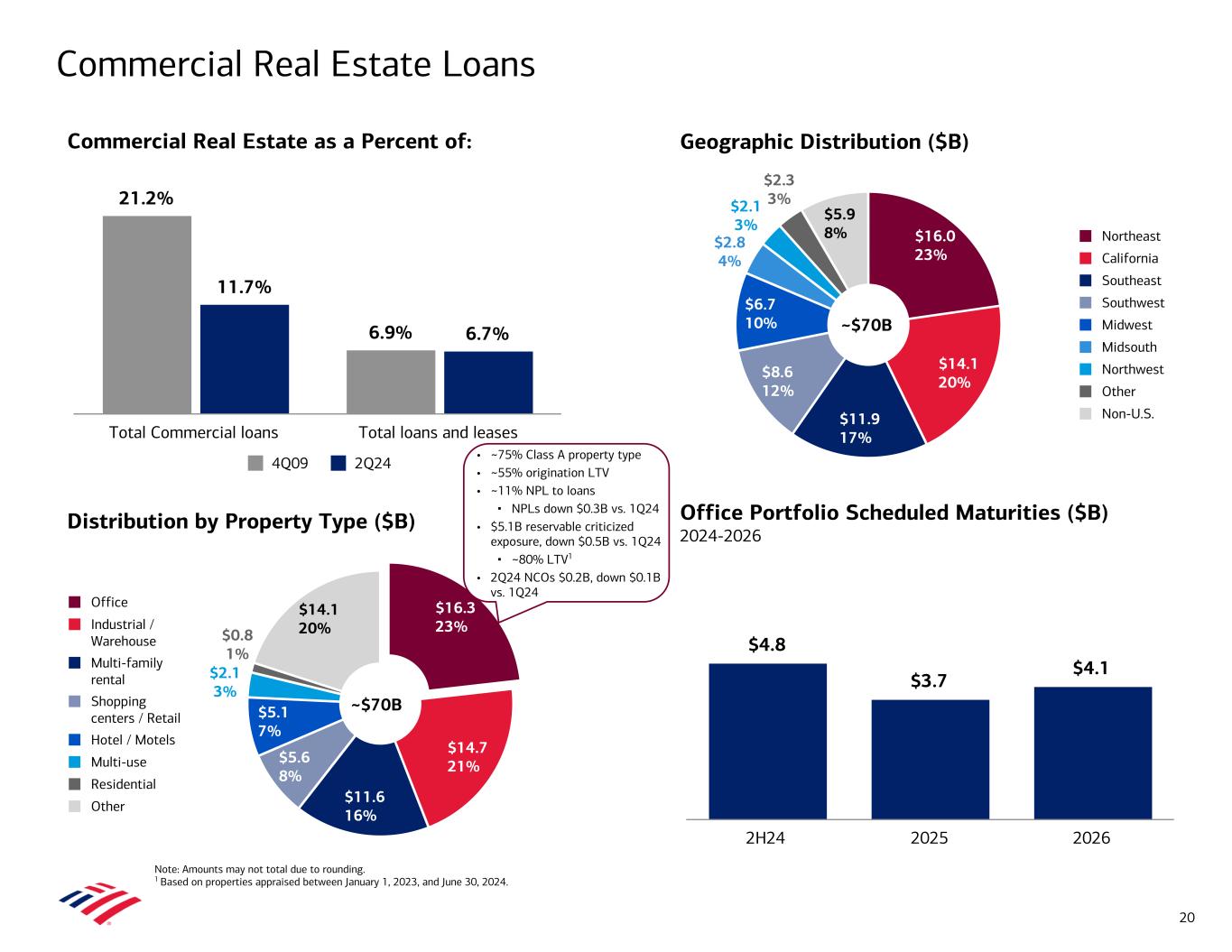 4Q19 2Q24 $0 $1,000 $2,000 $3,000 Credit Card Update 30+ Days Past Due ($MM)1 Payment Rates Remain Elevated while Utilization Rates are Lower Compared to 4Q191,2 4Q19 2Q24 $0 $500 $1,000 $1,500 90+ Days Past Due ($MM)1 5 2.09% 2.43% Delinquency rate 1.07% 1.26% Utilization rate Payment rate 4Q19 2Q24 0.8X 1.0X 1.3X 1.5X Growth in Deposit and Investment Balances of Credit Card Clients3 4Q19 2Q24 (20%) 0% 20% 40% +25% 1.2X 0.9X 1 Includes consumer credit card portfolios in Consumer Banking and GWIM. 2 Utilization rate is calculated as ending loan balances divided by open or active credit line commitments. Payment rate is calculated as in-month payment volume divided by previous month ending loan balances. Quarterly payment rate is the average of monthly payment rates. 3 Represent average Bank of America deposit and investment account balances of consumer credit card clients in Consumer Banking and GWIM. Delinquency rate