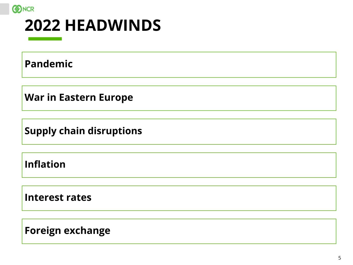 5 2022 HEADWINDS Pandemic War in Eastern Europe Supply chain disruptions Interest rates Inflation Foreign exchange