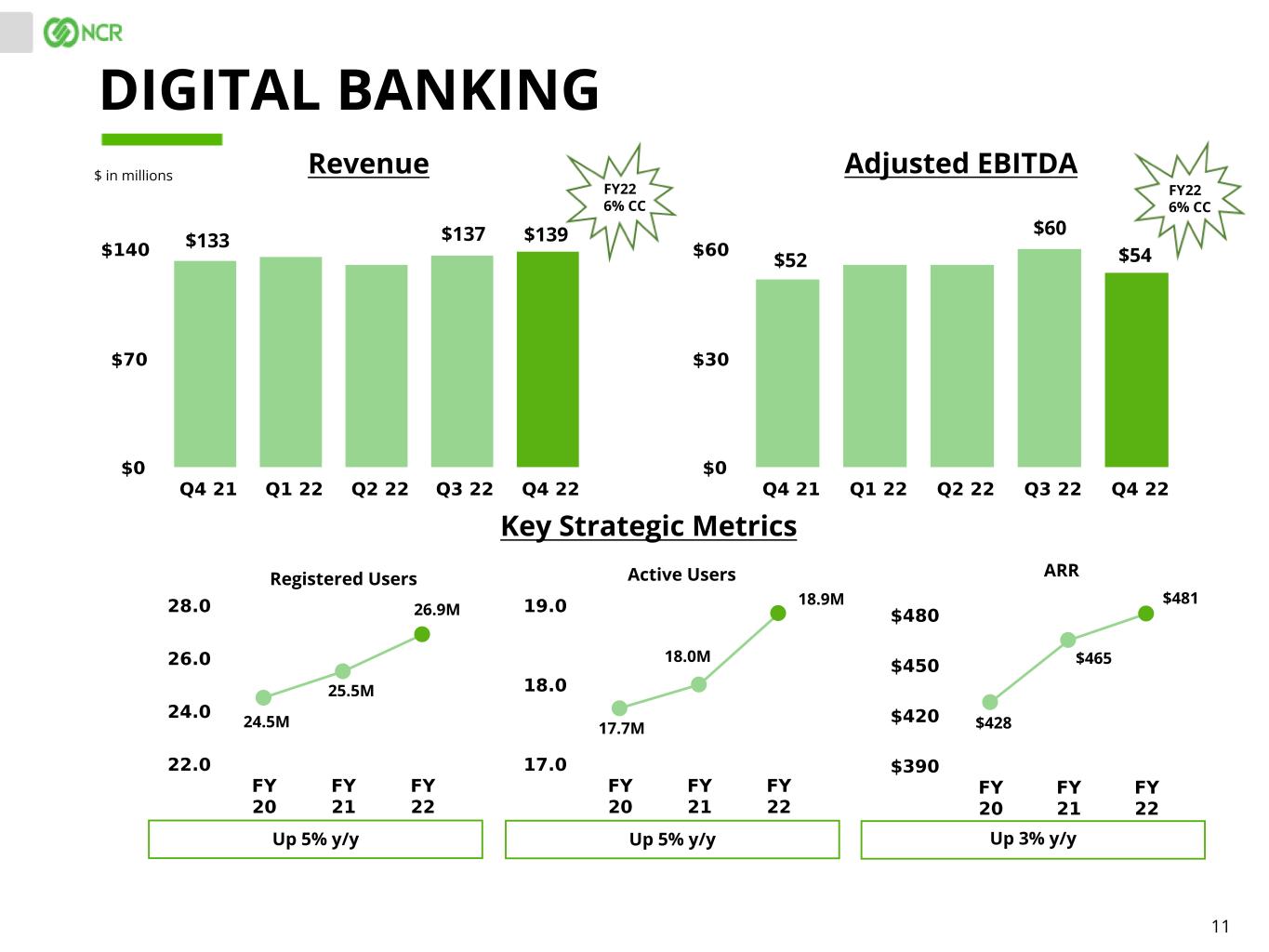 10 $ in millions, except site counts HOSPITALITY Revenue Adjusted EBITDA Platform Sites ARR Up 20% y/y Up 6% y/y Key Strategic Metrics $231 $238 $39 $51 24,490 $479 $239 $54 $510 29,391 $423 18,467 Payments Sites Up 64% y/y 2,957 4,851 659 FY22 22% CCFY22 10% CC
