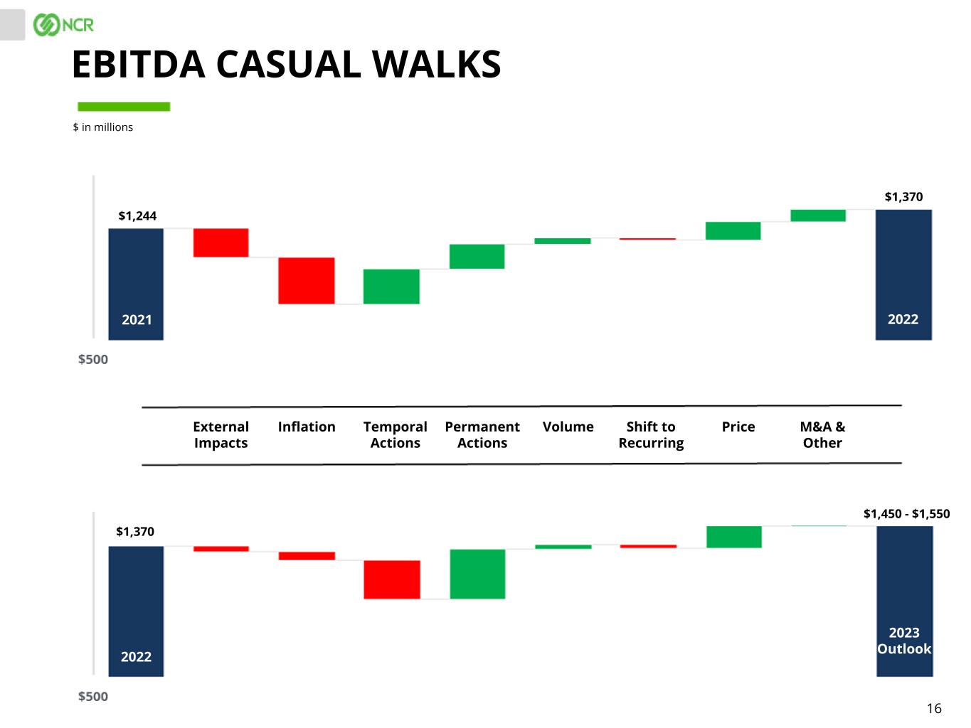 16 EBITDA CASUAL WALKS $ in millions External Impacts Inflation Temporal Actions Permanent Actions Volume Shift to Recurring Price M&A & Other 2021 2022 2022 2023 Outlook $1,244 $1,370 $1,370 $1,450 - $1,550
