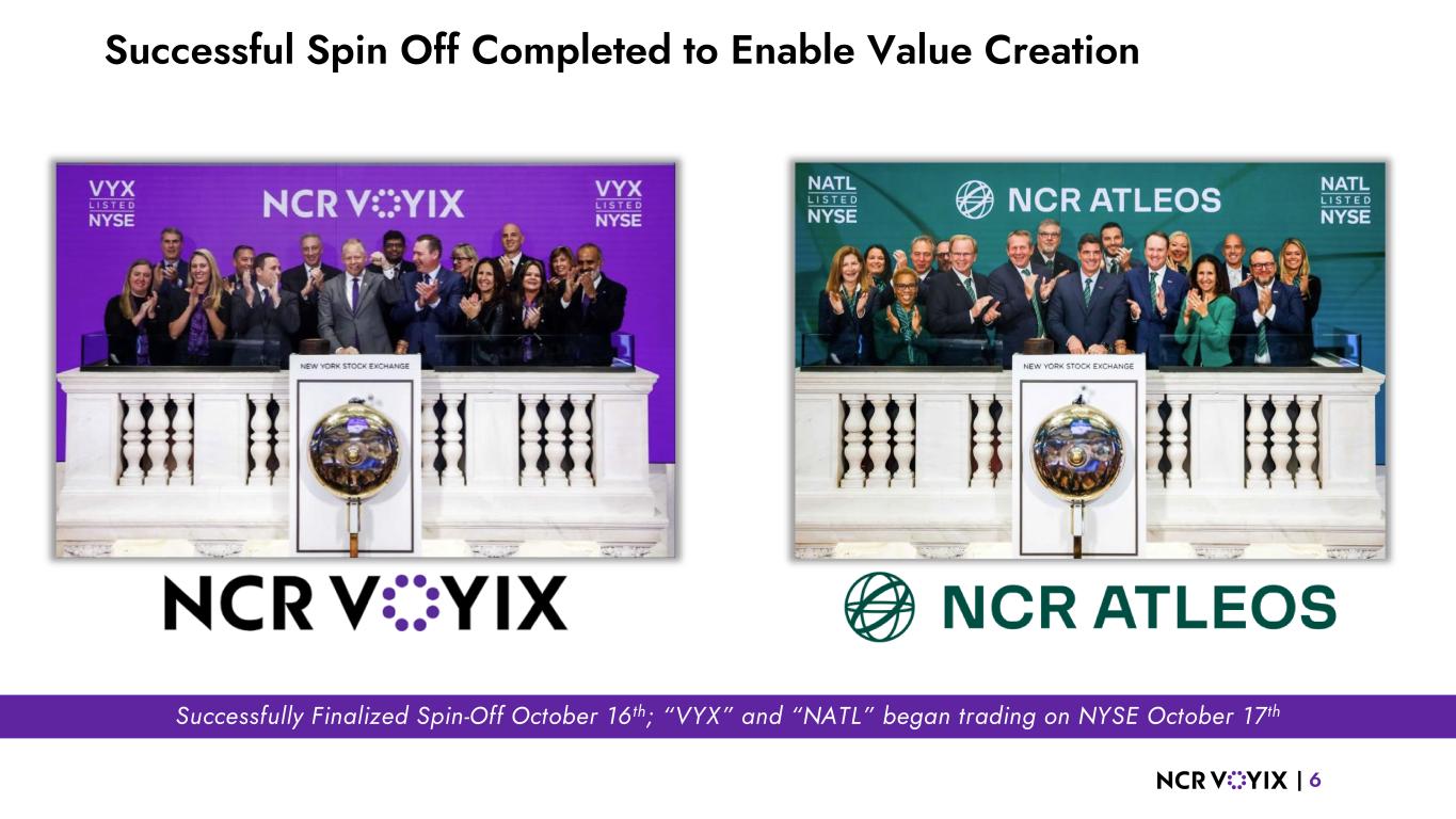 NCR Voyix | 6 Successful Spin Off Completed to Enable Value Creation Successfully Finalized Spin-Off October 16th; “VYX” and “NATL” began trading on NYSE October 17th