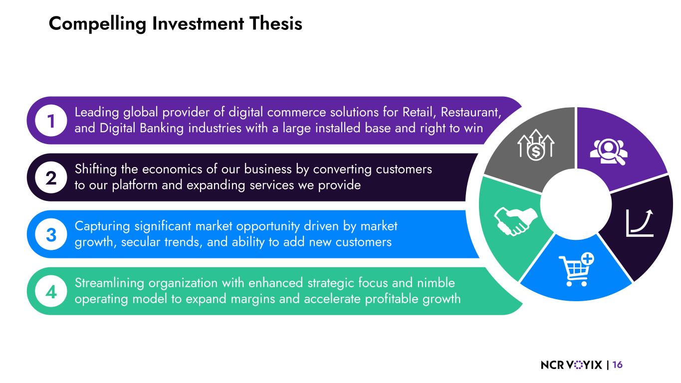 NCR Voyix | 15 $477 $481 $493 $508 $520 Q3 '22 Q4 '22 Q1 '23 Q2 '23 Q3 '23 $121 $122 $122 $125 $132 $356 $379 Q3 '22 Q4 '22 Q1 '23 Q2 '23 Q3 '23 YTD 2022 YTD 2023 Recurring Revenue ($M) $60 $54 $49 $53 $58 $172 $160 Q3 '22 Q4 '22 Q1 '23 Q2 '23 Q3 '23 YTD 2022 YTD 2023 38.8% 36.0% 18.8 18.9 19.1 19.2 19.3 26.6 26.9 27.3 27.7 28.0 Q3 '22 Q4 '22 Q1 '23 Q2 '23 Q3 '23 37.9% 39.5% 37.8%42.6% 43.8% Adjusted EBITDA ($M) / Margin (%) 9% Y/Y 9% CC Y/Y 6% CC Y/Y (7%) CC Y/Y (3%) CC Y/Y 3% Y/Y Registered Users Active Users (M) 5% Y/Y Q3 2023 Digital Banking Segment Results1 $137 $139 $136 $140 $147 $404 $423 Q3 '22 Q4 '22 Q1 '23 Q2 '23 Q3 '23 YTD 2022 YTD 2023 Digital Banking Revenue ($M) 5% CC Y/Y 7% CC Y/Y 1 The presented segment information presents information solely for the Company’s Digital Banking segment and excludes corporate costs. See the Note "Segments Information" on Slide 3 for more information. ARR ($M)
