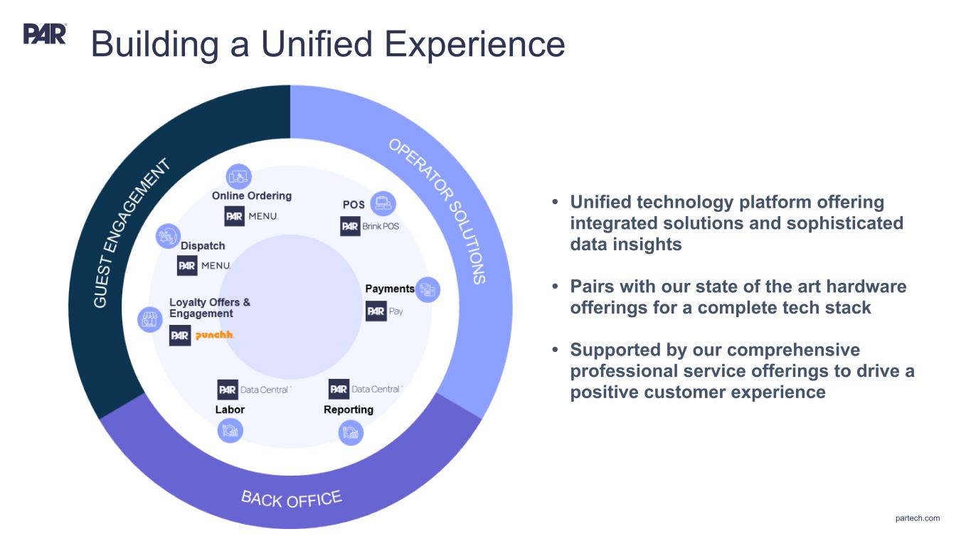 partech.com • Unified technology platform offering integrated solutions and sophisticated data insights • Pairs with our state of the art hardware offerings for a complete tech stack • Supported by our comprehensive professional service offerings to drive a positive customer experience Building a Unified Experience