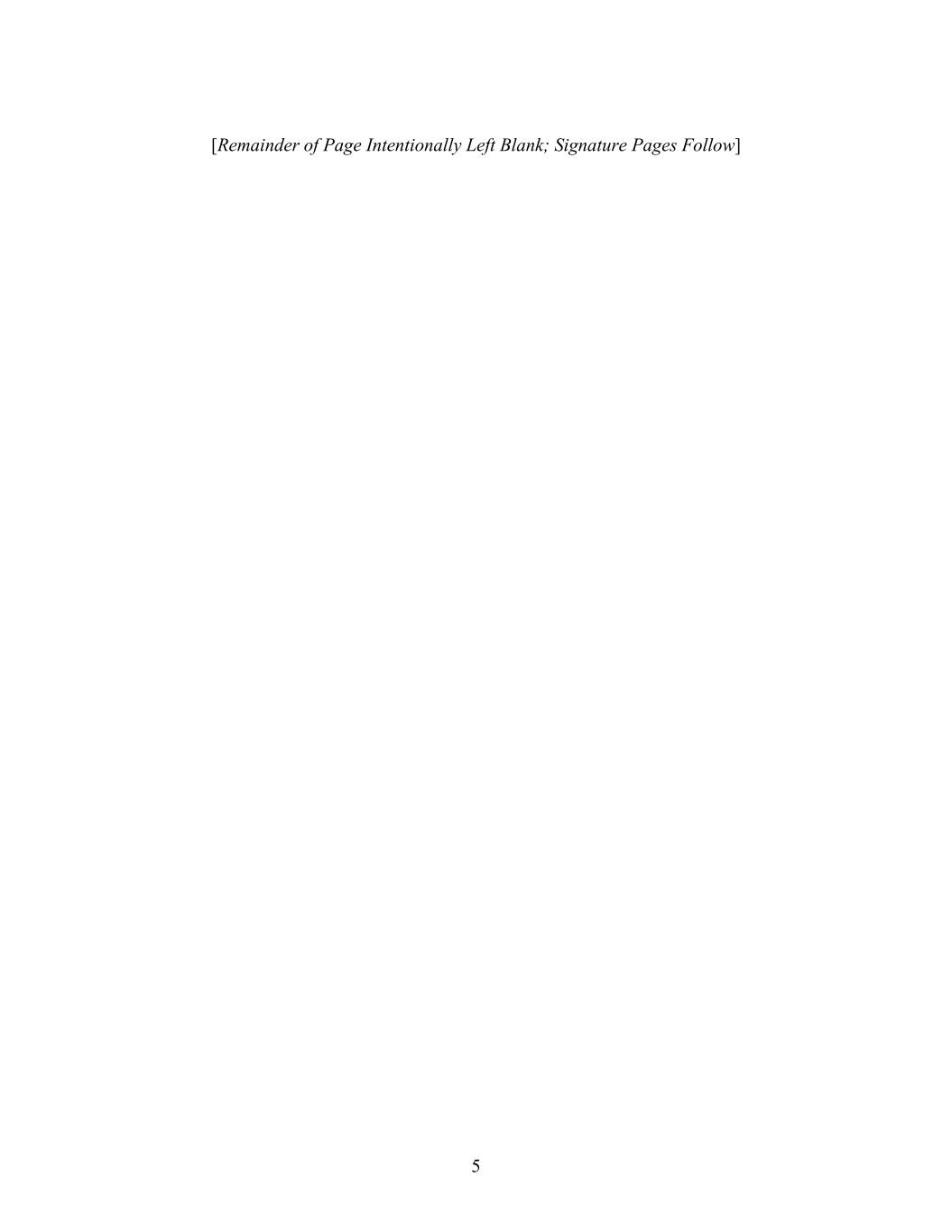 5 [Remainder of Page Intentionally Left Blank; Signature Pages Follow]