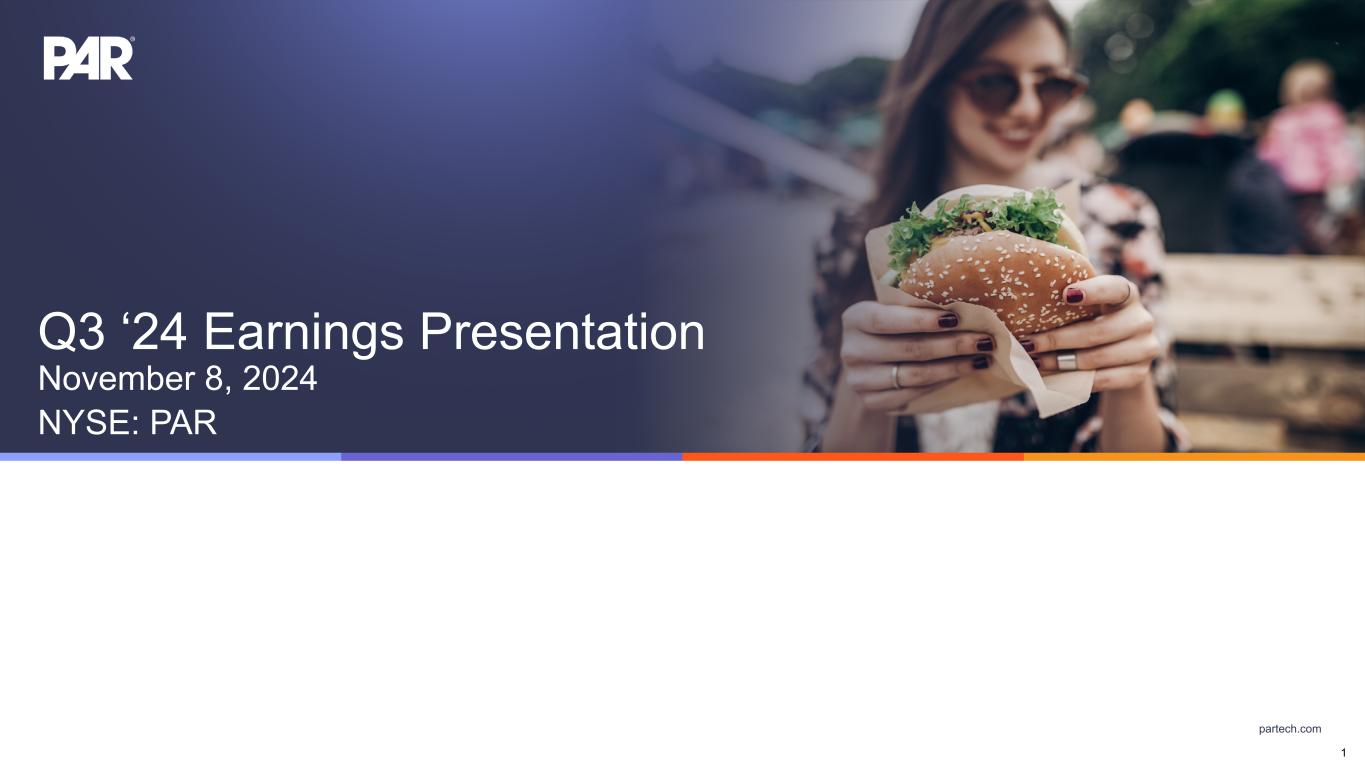 partech.com Q3 ‘24 Earnings Presentation November 8, 2024 NYSE: PAR 1