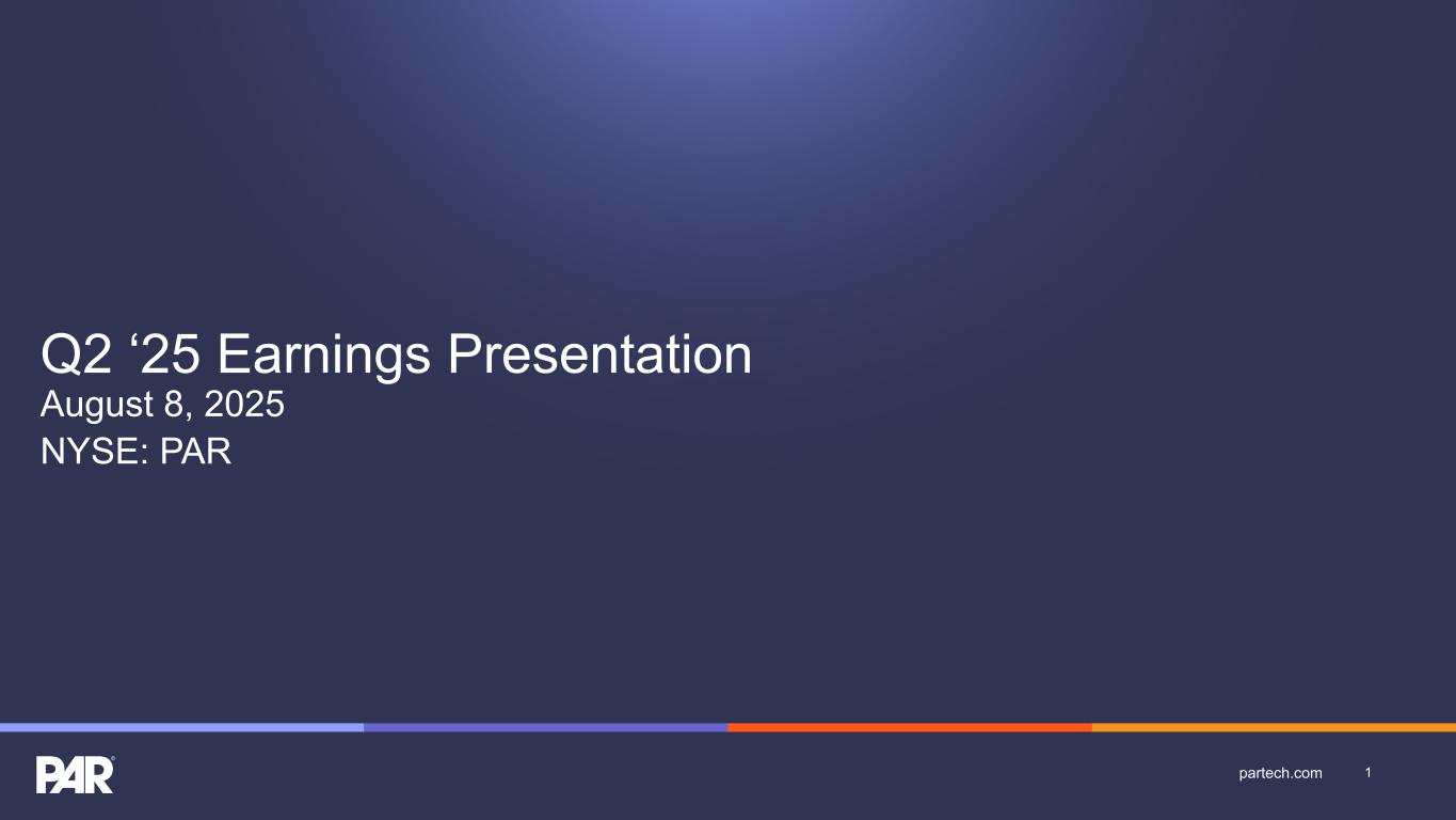 Q2 ‘25 Earnings Presentation August 8, 2025 NYSE: PAR 1partech.com
