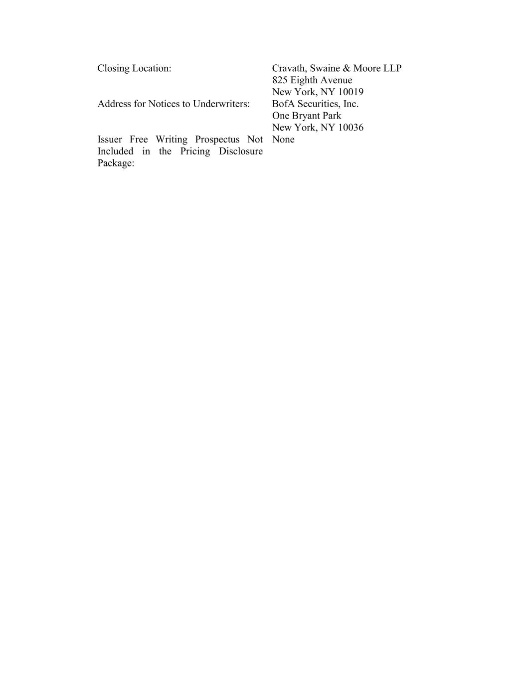 Closing Location: Cravath, Swaine & Moore LLP 825 Eighth Avenue New York, NY 10019 Address for Notices to Underwriters: BofA Securities, Inc. One Bryant Park New York, NY 10036 Issuer Free Writing Prospectus Not Included in the Pricing Disclosure Package: None