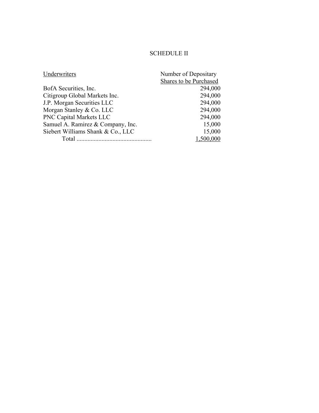 SCHEDULE II Underwriters Number of Depositary Shares to be Purchased BofA Securities, Inc. 294,000 Citigroup Global Markets Inc. 294,000 J.P. Morgan Securities LLC 294,000 Morgan Stanley & Co. LLC 294,000 PNC Capital Markets LLC 294,000 Samuel A. Ramirez & Company, Inc. 15,000 Siebert Williams Shank & Co., LLC 15,000 Total ................................................ 1,500,000