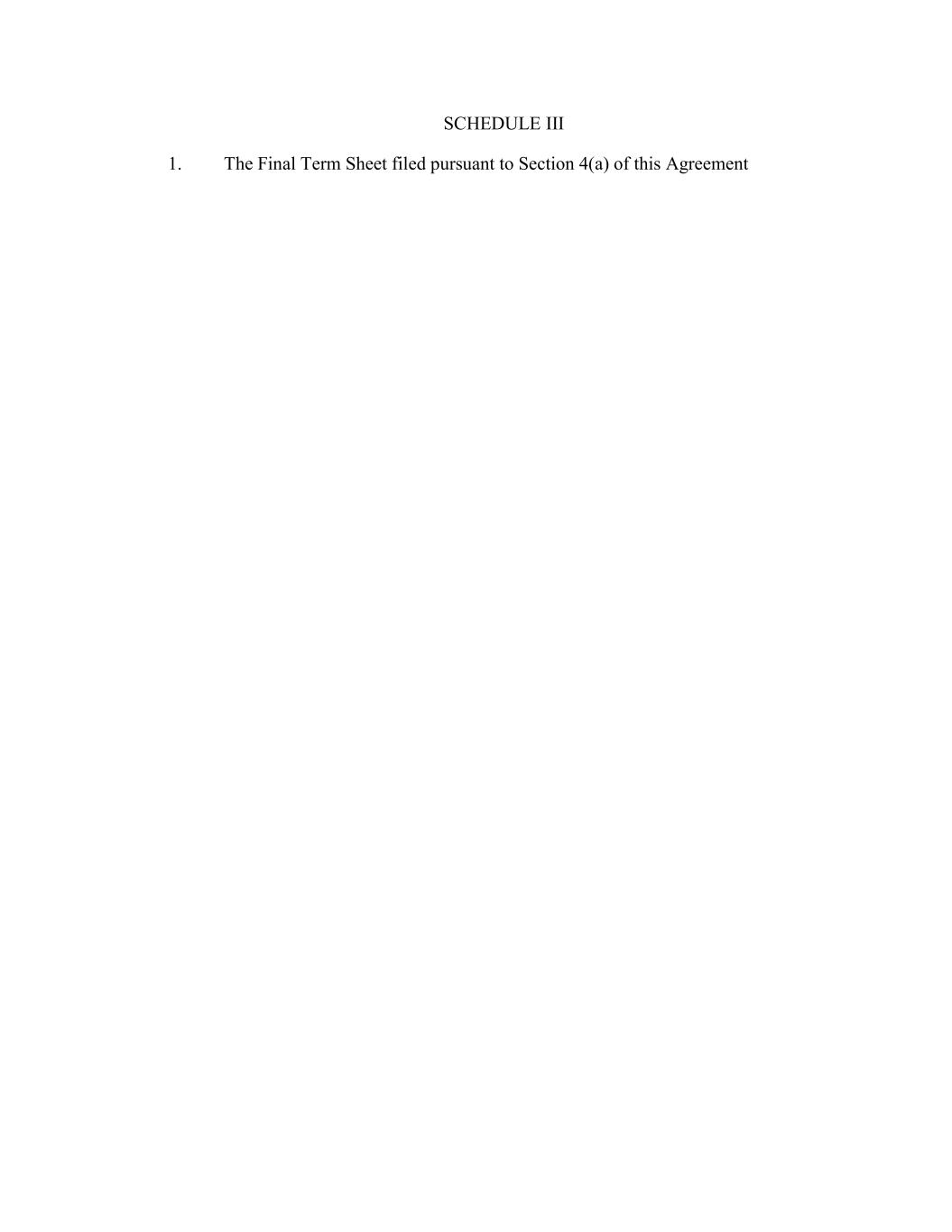 SCHEDULE III 1. The Final Term Sheet filed pursuant to Section 4(a) of this Agreement