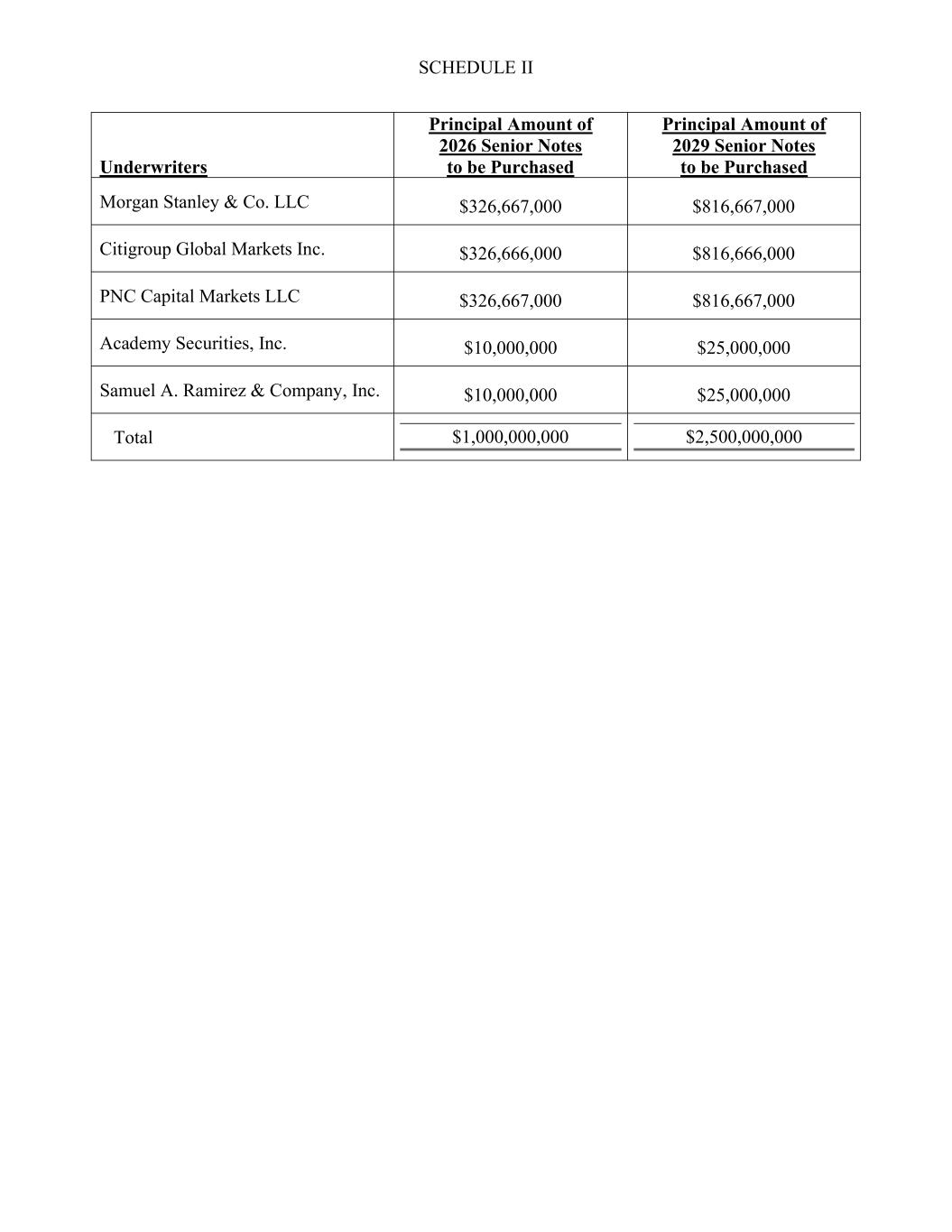 SCHEDULE II Underwriters Principal Amount of 2026 Senior Notes to be Purchased Principal Amount of 2029 Senior Notes to be Purchased Morgan Stanley & Co. LLC $326,667,000 $816,667,000 Citigroup Global Markets Inc. $326,666,000 $816,666,000 PNC Capital Markets LLC $326,667,000 $816,667,000 Academy Securities, Inc. $10,000,000 $25,000,000 Samuel A. Ramirez & Company, Inc. $10,000,000 $25,000,000 Total $1,000,000,000 $2,500,000,000