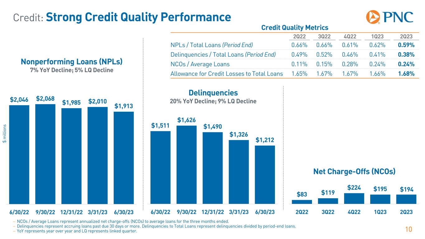 Income Statement: Well-Controlled Expenses 9 Noninterest Expense Focused on Controlling Expenses $3,244 $3,321 $3,372 2Q22 1Q23 2Q23 Details of Expenses $ m ill io ns 2Q23 vs. 1Q23 2Q23 vs. 2Q22 $ millions 2Q23 $ % $ % Personnel $1,846 $20 1% $67 4% Occupancy 244 (7) (3)% (2) (1)% Equipment 349 (1) -- (2) (1)% Marketing 109 35 47% 14 15% Other 824 4 -- 51 7% Noninterest Expense $3,372 $51 2% $128 4%