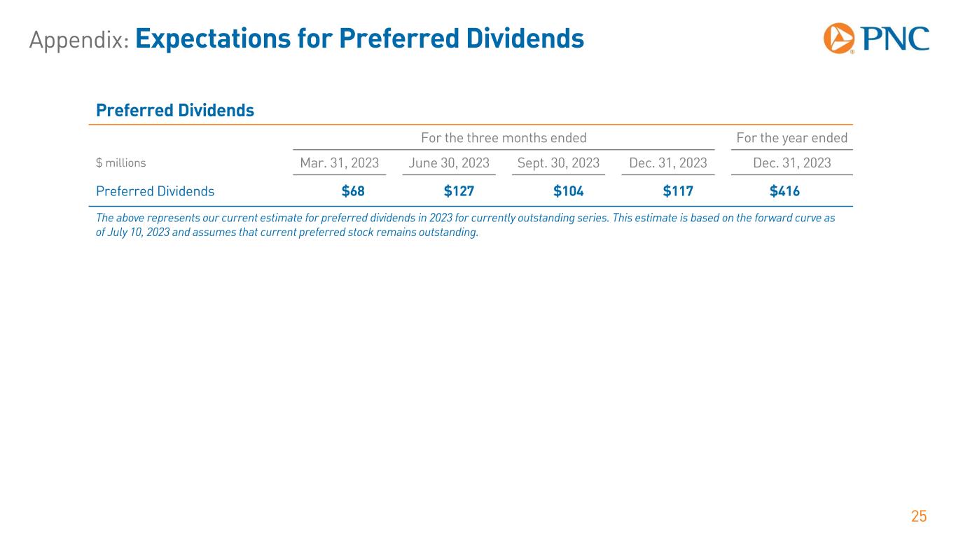 Appendix: Non-GAAP to GAAP Reconciliation 24 Tangible Common Equity Ratio (non-GAAP) For the three months ended $ millions June 30, 2023 Tangible common shareholders’ equity Common shareholders’ equity $42,083 Goodwill and other intangible assets (11,357) Deferred tax liabilities on goodwill and other intangible assets 256 Tangible common shareholders' equity $30,982 Tangible assets Total assets $558,207 Goodwill and other intangible assets (11,357) Deferred tax liabilities on goodwill and other intangible assets 256 Tangible assets $557,106 Tangible common equity ratio (non-GAAP) 5.7% Tangible common equity ratio is a non-GAAP measure and is calculated based on tangible common shareholders’ equity divided by tangible assets. We believe this non-GAAP measure to be a key financial metric in assessing capital adequacy.