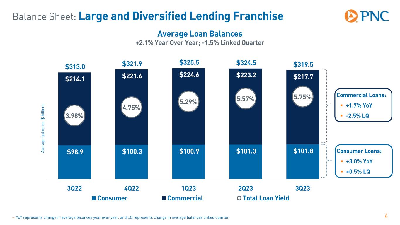 Balance Sheet: Well-Positioned Balance Sheet 3 3Q23 vs. 2Q23 3Q23 vs. 3Q22 Average balances, $ billions 3Q23 $ Change % Change $ Change % Change Total loans $319.5 ($5.0) (2)% $6.5 2% Investment securities $139.7 ($1.3) (1)% $2.7 2% Federal Reserve Bank (FRB) balances $37.9 $7.3 24% $6.4 20% Deposits $422.5 ($3.2) (1)% ($16.7) (4)% Borrowed funds $67.5 $1.8 3% $23.2 52% Common shareholders’ equity $42.1 $0.4 1% $0.8 2% Period End 3Q23 2Q23 3Q23 vs. 2Q23 3Q22 3Q23 vs. 3Q22 Basel III CET1 capital ratio 9.8% 9.5% 30 bps 9.3% 50 bps AOCI ($ in billions) ($10.3) ($9.5) (8)% ($10.5) 2% Tangible book value per common share (non-GAAP) $78.16 $77.80 -- $69.98 12% Return on average common equity 13.65% 13.01% 64 bps 14.97% (132) bps − AOCI represents accumulated other comprehensive income. − Tangible book value per common share (non-GAAP) – See reconciliation in Appendix.