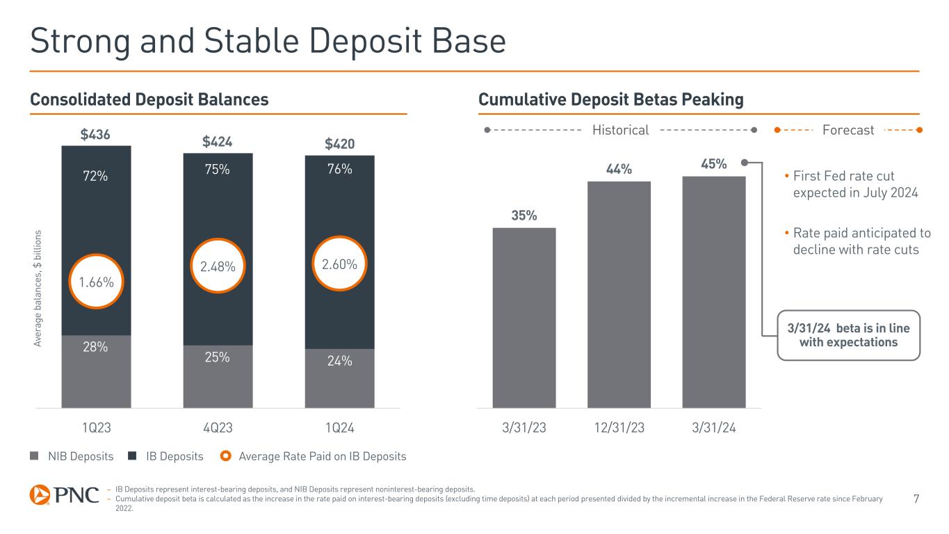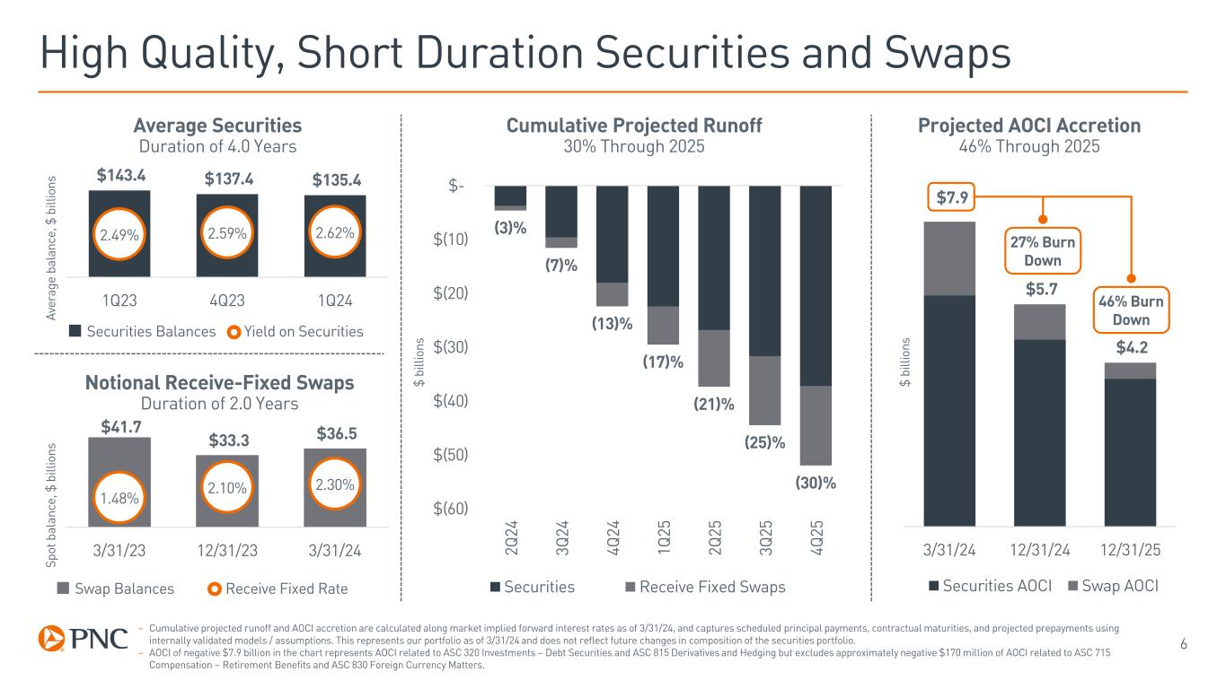$41.7 $33.3 $36.5 1.48% 2.10% 2.30% 3/31/23 12/31/23 3/31/24 6 High Quality, Short Duration Securities and Swaps – Cumulative projected runoff and AOCI accretion are calculated along market implied forward interest rates as of 3/31/24, and captures scheduled principal payments, contractual maturities, and projected prepayments using internally validated models / assumptions. This represents our portfolio as of 3/31/24 and does not reflect future changes in composition of the securities portfolio. – AOCI of negative $7.9 billion in the chart represents AOCI related to ASC 320 Investments – Debt Securities and ASC 815 Derivatives and Hedging but excludes approximately negative $170 million of AOCI related to ASC 715 Compensation – Retirement Benefits and ASC 830 Foreign Currency Matters. Average Securities Duration of 4.0 Years $143.4 $137.4 $135.4 2.49% 2.59% 2.62% 1Q23 4Q23 1Q24 Notional Receive-Fixed Swaps Duration of 2.0 Years (3)% (7)% (13)% (17)% (21)% (25)% (30)% $(60) $(50) $(40) $(30) $(20) $(10) $- 2Q 24 3Q 24 4Q 24 1Q 25 2Q 25 3Q 25 4Q 25 Securities Receive Fixed Swaps Cumulative Projected Runoff 30% Through 2025 Projected AOCI Accretion 46% Through 2025 $7.9 $5.7 $4.2 3/31/24 12/31/24 12/31/25 Securities AOCI Swap AOCI Sp ot b al an ce , $ b ill io ns Av er ag e ba la nc e, $ b ill io ns 27% Burn Down 46% Burn Down $ bi lli on s $ bi lli on s Swap Balances Receive Fixed Rate Securities Balances Yield on Securities