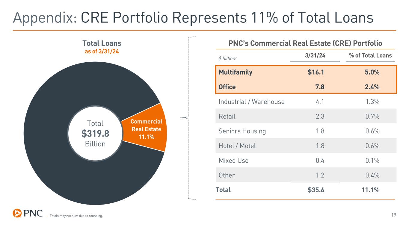 Appendix: Granular Deposit Base 18 – Relationship Accounts represent commercial deposit customers with at least one additional PNC product (e.g. Lending, Treasury Management, Capital Markets, Merchant Services, etc.). – Operating & relationship accounts are comprised of 78% relationship accounts, 14% TM compensating balances and 4% Midland escrow accounts. – TM Compensating Balances represent treasury management accounts that maintain balances that are used to offset treasury management fees. – Totals may not sum due to rounding. Composition of Deposit Portfolio 57% of Total Deposits are Insured Total Deposits $426 Billion as of 3/31/24 91% Insured 22% Insured 78% Uninsured Consumer $223 billion Deposits ~20 million Consumer accounts ~$11,000 Average account balance 2,271 Branches Commercial $202 billion Deposits 1.4 million Commercial accounts 96% Operating & relationship accounts 4% Deposit only accounts