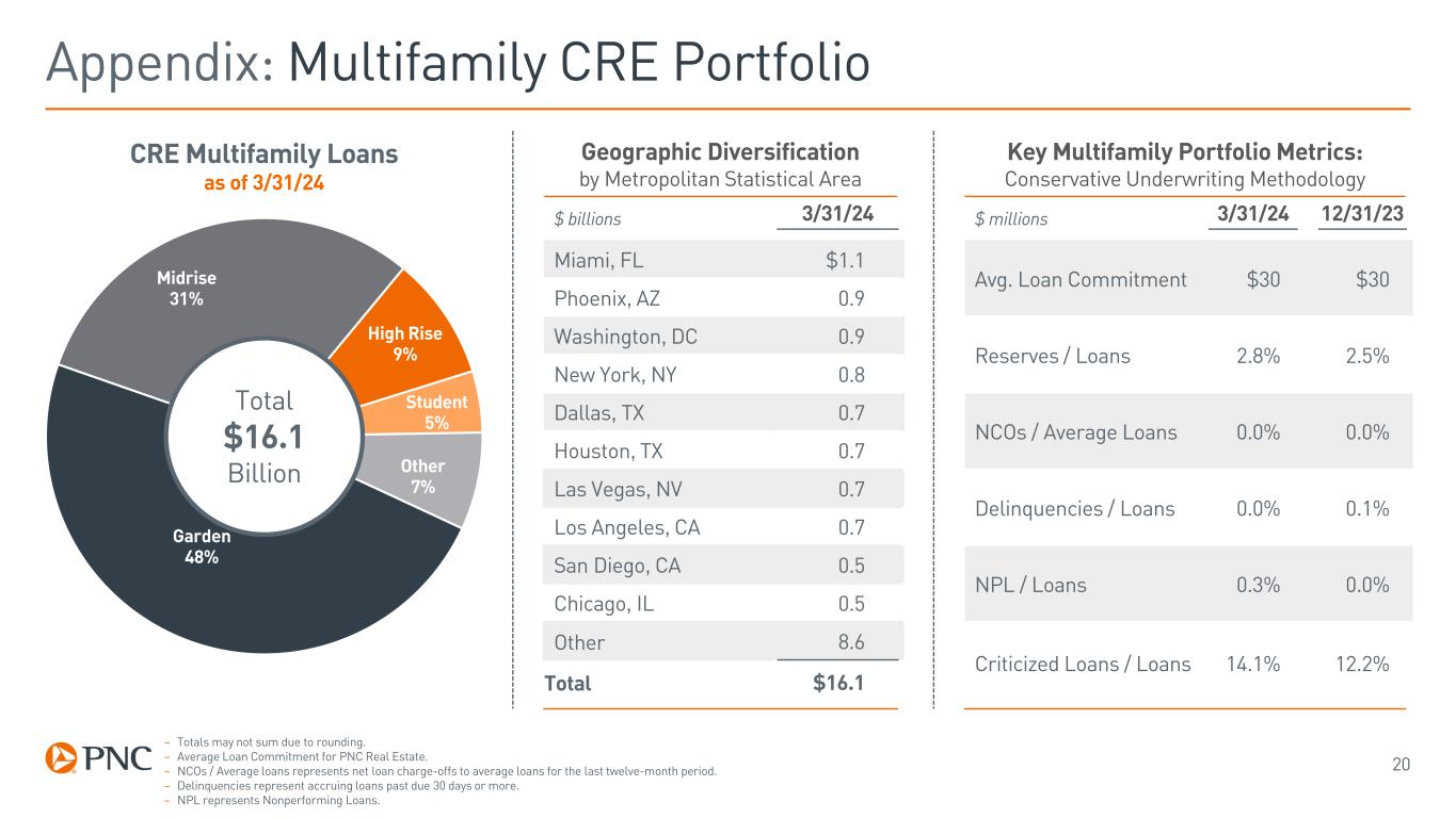 Appendix: CRE Portfolio Represents 11% of Total Loans 19 Commercial Real Estate 11.1% Total $319.8 Billion Total Loans as of 3/31/24 PNC’s Commercial Real Estate (CRE) Portfolio $ billions 3/31/24 % of Total Loans Multifamily $16.1 5.0% Office 7.8 2.4% Industrial / Warehouse 4.1 1.3% Retail 2.3 0.7% Seniors Housing 1.8 0.6% Hotel / Motel 1.8 0.6% Mixed Use 0.4 0.1% Other 1.2 0.4% Total $35.6 11.1% – Totals may not sum due to rounding.
